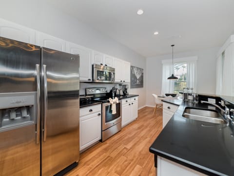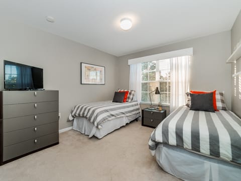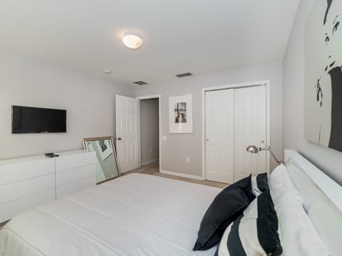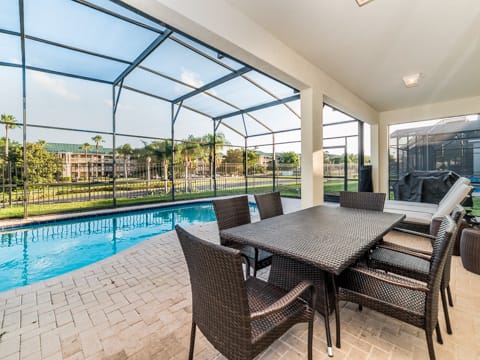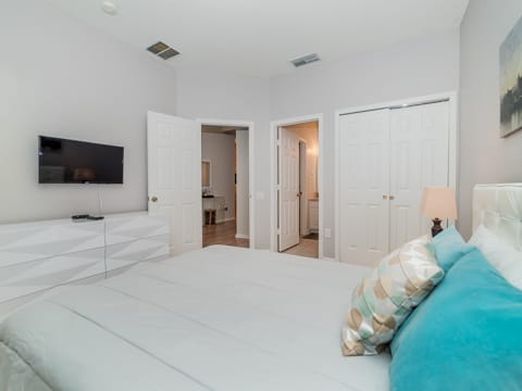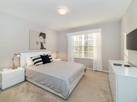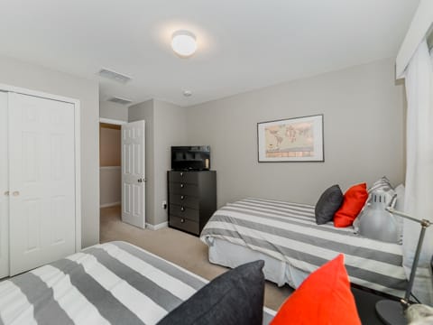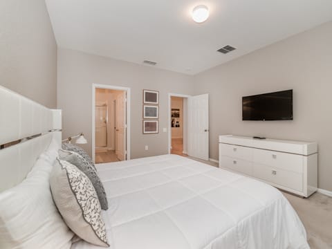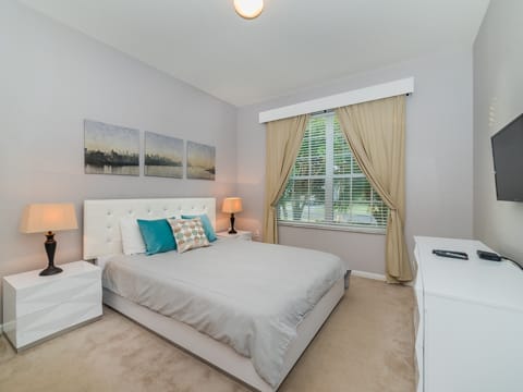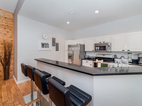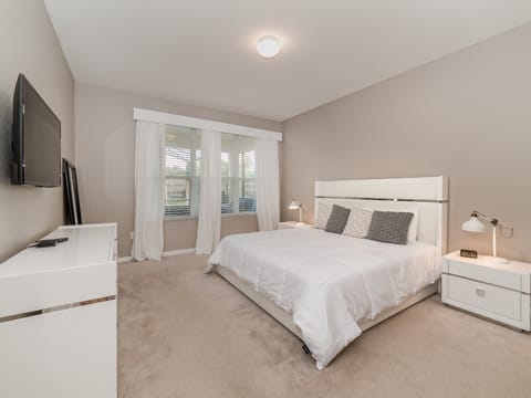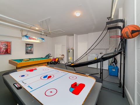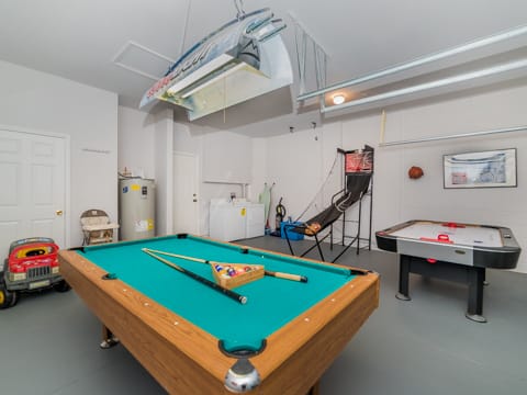 A few miles from all the Orlando entertainment lies this gorgeous 5 bedroom, 5 bathroom home in Windsor Hills. This gated community home sleeps up to 10 guests perfectly where everyone will find their own space on vacation, with 1 king bedroom, 2 queen bedrooms and 2 bedrooms with 2 twins. All of the 5 bedrooms contribute to the cozy and modern feel with their neutral colors. As part of the Grand Collection, this home is styled and designed by professionals with comfort and luxury in mind. With a newly redesigned concept, this bright and open home is made for family time. The modern living room features light wood floors, a 60” flat screen TV and cozy furnishings. The kitchen features dark countertops, upgraded appliances, a breakfast bar as well as upgraded appliances. Heading into the dining room, you are surrounded by wood and a built-in fireplace. This home also has WiFi as well as a washer and dryer for you to use. Two additional features of this home are the game room and pool area. The game room is the perfect place for family movie nights with billiards and air hockey. The pool area is also the perfect place to enjoy the Florida sun. Staying here includes access to the Windsor Hills clubhouse as well. The zero entry pool, slides and movie theatre wall keep you and your family entertained all day. Book your stay today and enjoy your vacation in sunny Florida.