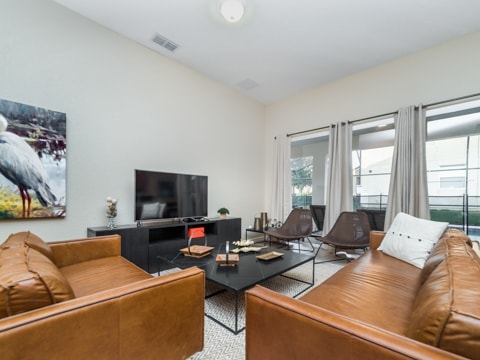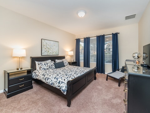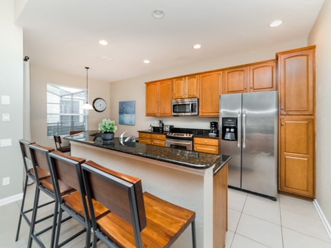 Welcome to this stunning rental home located in the resort community of Windsor Hills. This beautifully decorated home is perfect for a weekend getaway or long stay here in Central Florida. To begin, this spectacular open floor plan home features 5 spacious bedrooms with plenty of space for you and your guests. The bedroom configurations consist of two king bedrooms, one queen bedroom, one full bedroom and one bedroom featuring two twin beds. In total, this large house can sleep up to 10 guests. The wonderful home also features a kitchen that will inspire the inner chef within you. The granite countertops, upgraded appliances and cabinetry add a nice bonus to the already beautiful layout. The kitchen opens up to the breakfast bar and dining room which offers seating for everyone. The living room is centered around a flat screen TV which is perfect for catching up on your favorite TV shows or finishing off the day with a movie. Head on out to the pool and swim, play or tan in this home's very own pool area. Eat dinner on the patio and relax as the sun goes down. This magnificent home also comes with full access to the clubhouse at Windsor Hills. If a full game room, movie theatre and water slide isn't enough, this clubhouse also comes with a gorgeous pool and many amenities. This home also comes with an in-unit washer and dryer for all those bathing suits and wireless internet is available throughout.