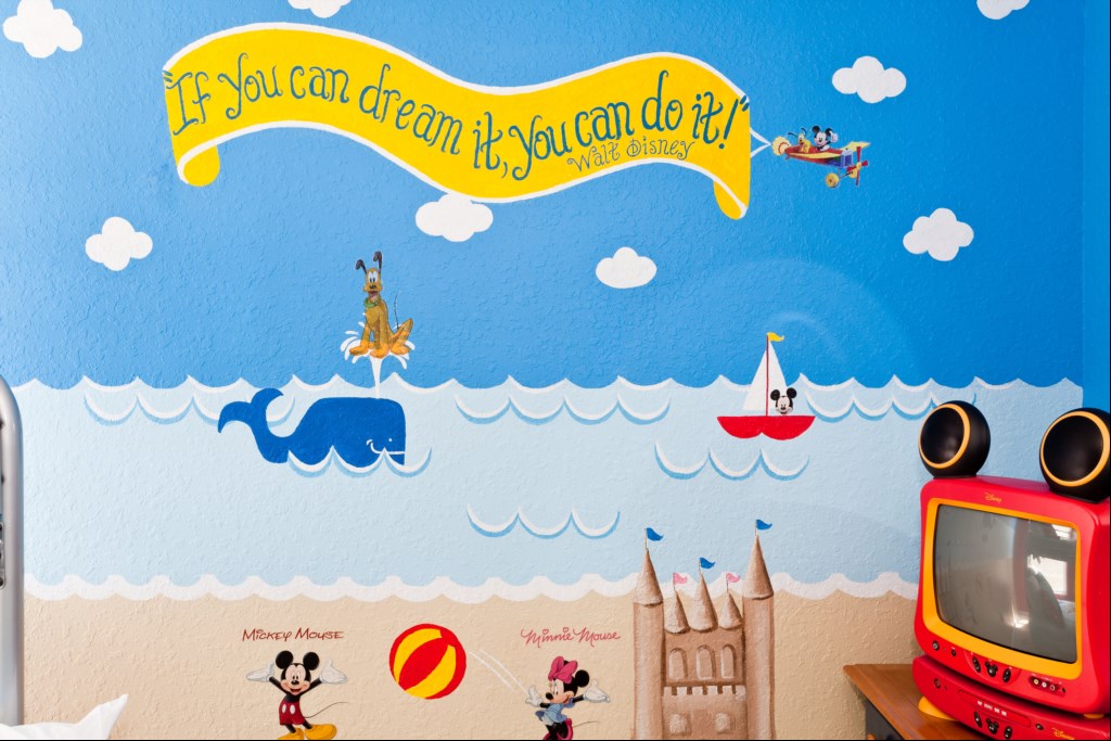 Located right next to the deluxe Windsor Hills playground and within walking distance to the clubhouse, this kid-friendly, 5-bedroom home features a Mickey Mouse-themed twin/full bunk bedroom plus a game room with tons of toys, a full-size air hockey table, PlayStation®2 and more! There’s also a flat-screen computer with complimentary Wi-Fi access, TVs in all bedrooms, a full-size crib in suite 1, a Pack ’n Play® and a fully equipped kitchen – plus a private pool & spa with a child safety fence, barbecue grill and more!