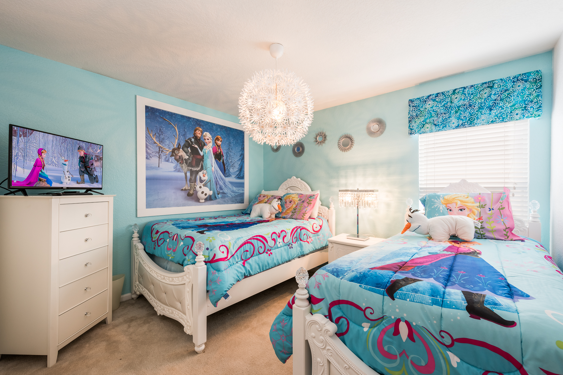 'Frozen' themed bedroom with a Twin and Full sized bed