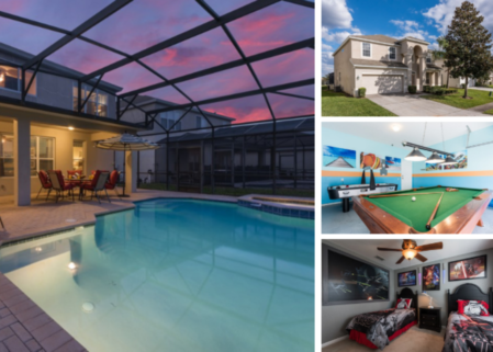 This 6 bedroom home is located at Windsor Hills Resort, a prime Orlando location, offering a short distance of less than 10 minutes to Walt Disney World and their 4 incredible theme parks!
