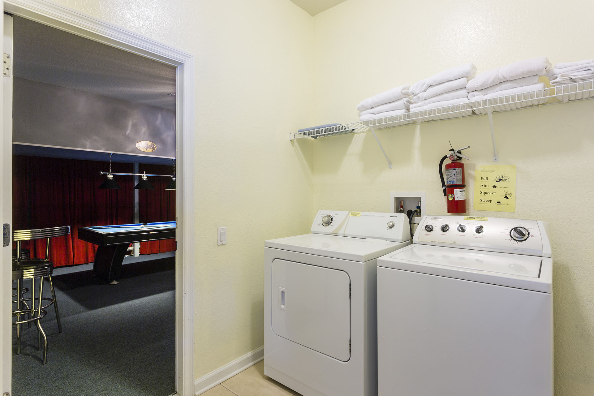 Laundry room is located downstairs