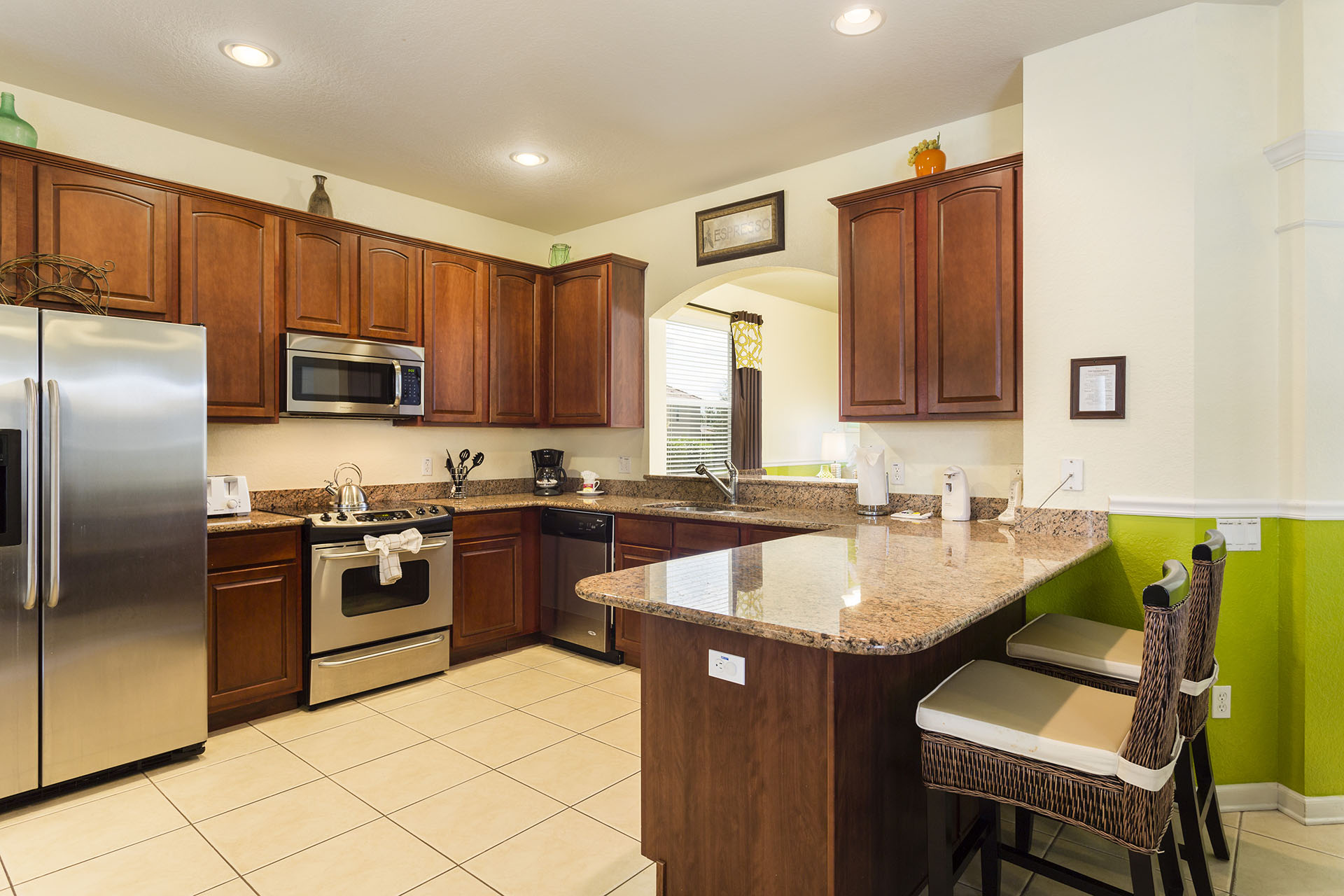 Refrigerator/freezer, oven, microwave, dishwasher, coffee maker, toaster