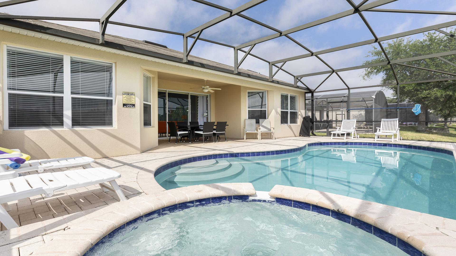 The screened in private swimming pool and spa is the perfect way to enjoy the warm Florida weather and have a relaxing day in the sunshine after long days at the theme parks.