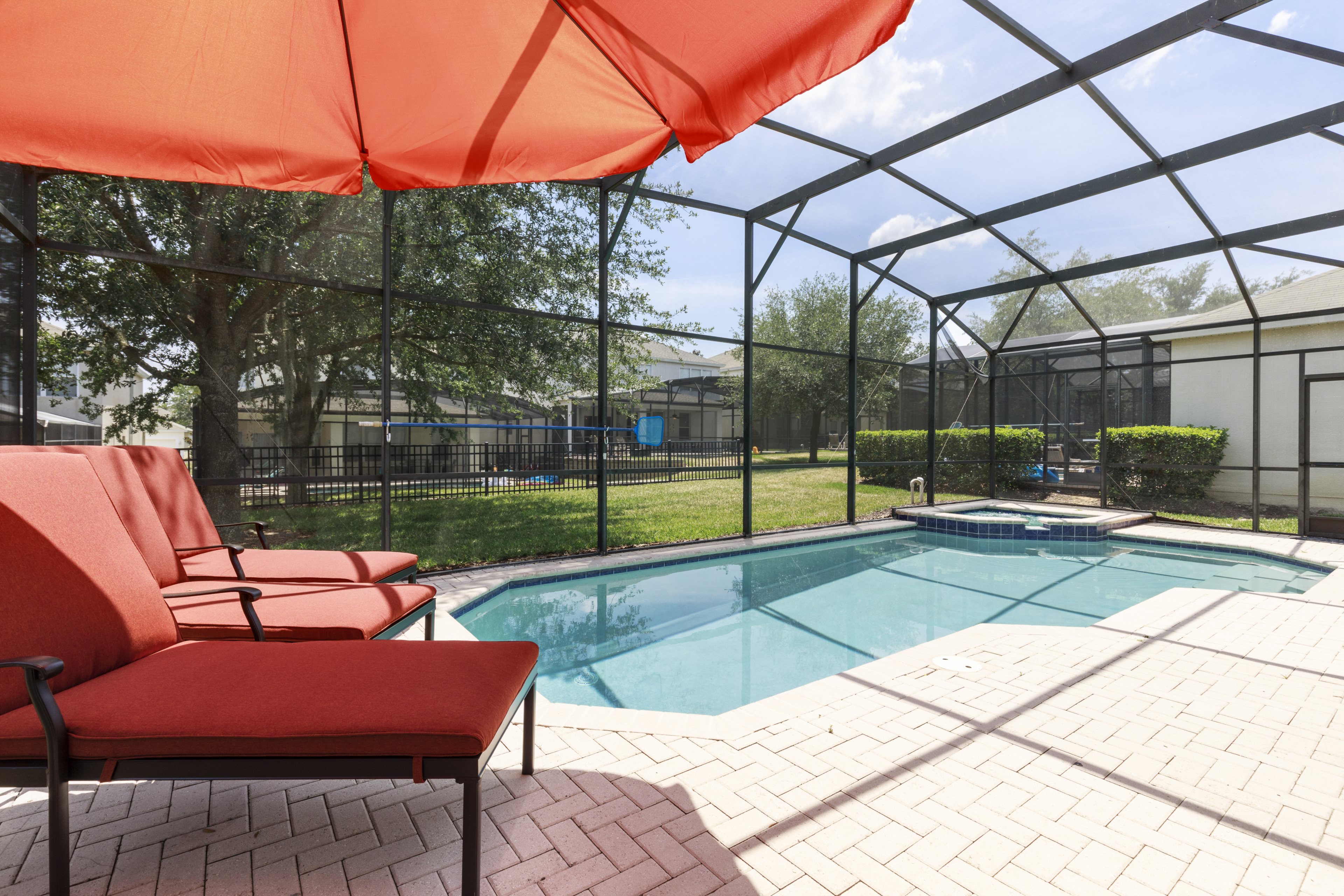 The screened in private swimming pool and spa is the perfect way to enjoy the warm Florida weather and have a relaxing day in the sunshine after long days at the theme parks.