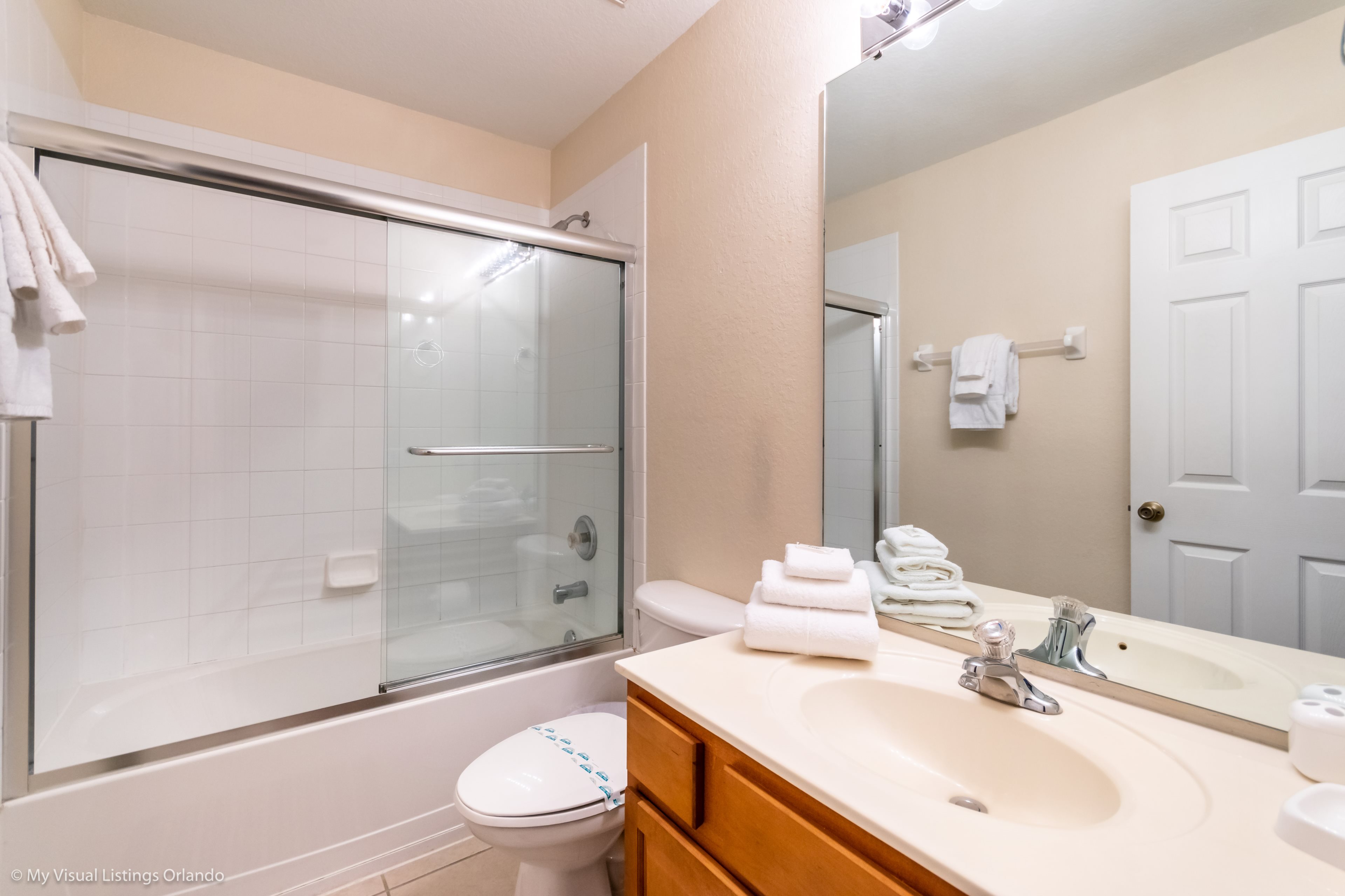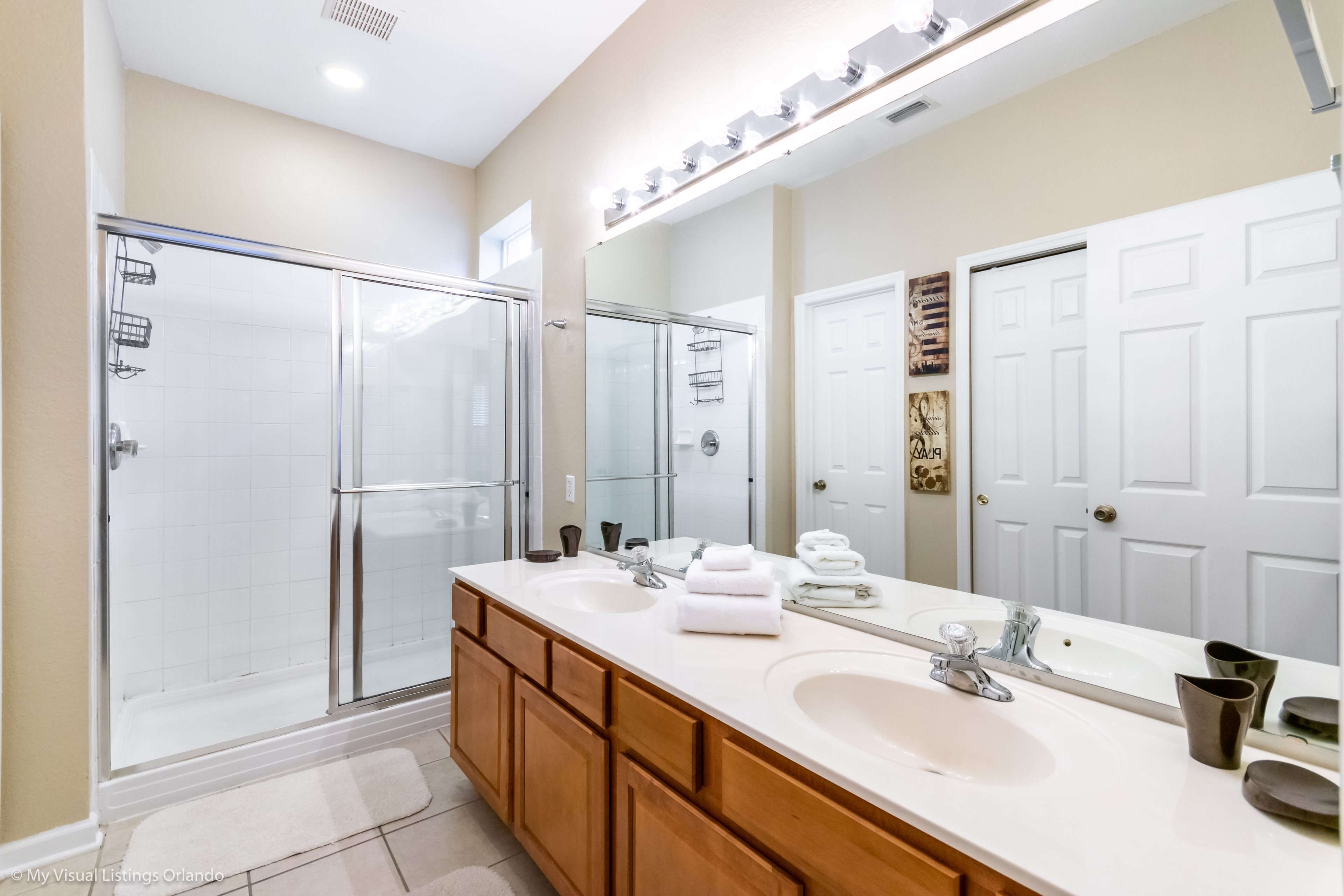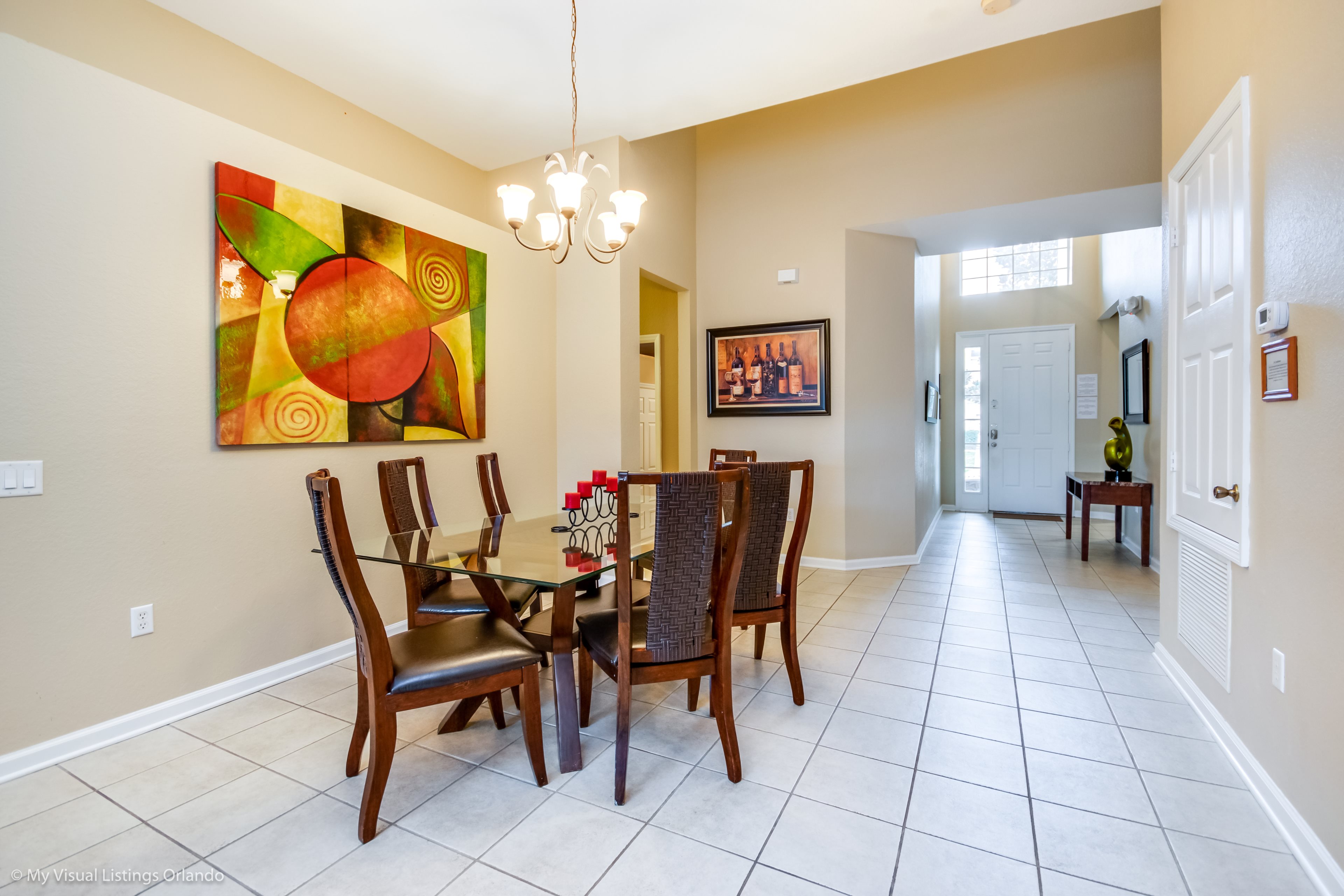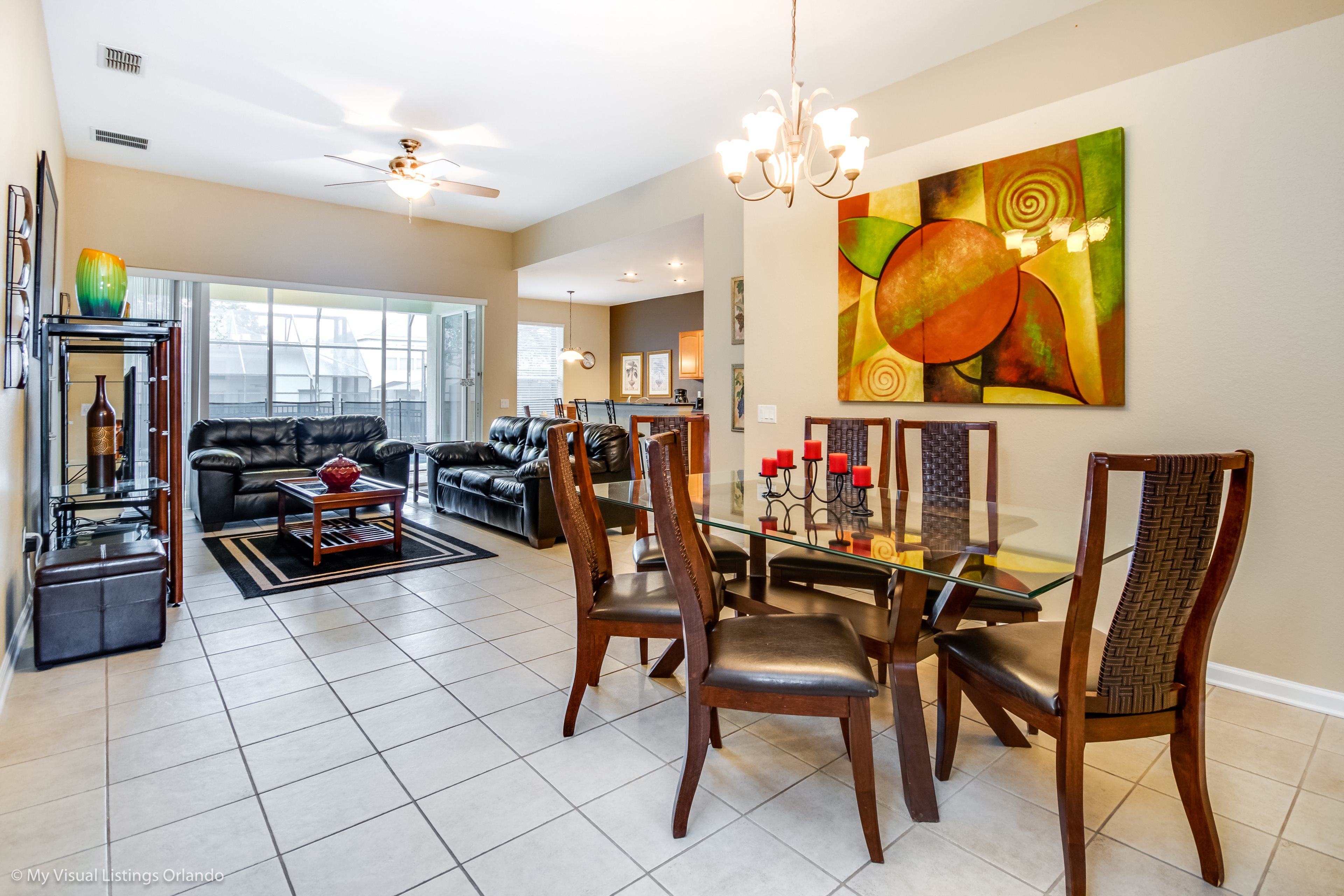 Attention to every detail has been put in as we furnished and decorated this home. This 5 bedroom 5 bath 2,966 sq feet unit sleeps 10 in style. With 1 king bedroom, 2 queen bedrooms and 2 twin bedrooms, there is plenty of room for everyone to spread out and relax after a day out or to just relax and stay in. The dining room offers plenty of space to visit and enjoy meals together. The bright and airy kitchen has all the appliances and is equipped with all the comforts of home. There is also a full-size washer and dryer. This home will bring the excitment of Disney to you and have the kids talking about your trip for months to come.