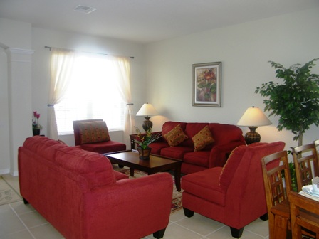 Enjoy lounging by your private electric heated swimming pool and Jacuzzi after a busy day of touring the state. Enjoy the favorable Florida weather even when it grows too hot from underneath the large covered lanai which has 2 ceiling lights, making it a perfect spot for evening entertainment. The pooldeck is fully furnished with a modern metal table and 6-chair set. Additionally there are 2 wooden rocking chairs, each with a side table and 2 long sun loungers where you can relax all day long. For extra precaution there is also a pool safety net for those with young children.