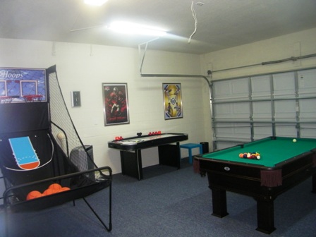 There are a total of 7 TVs, 3 DVD players, an IPod, and a CD player for your viewing and listening pleasures. A 50” flat screen can be found mounted on the wall of the family room, a 42” in the first master bedroom situated upstairs, a 19” in the second master bedroom, and 19” flat screen TVs in the remaining twin bedrooms.
