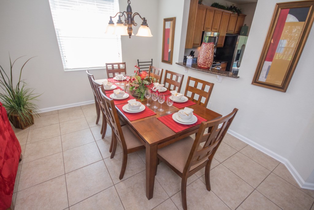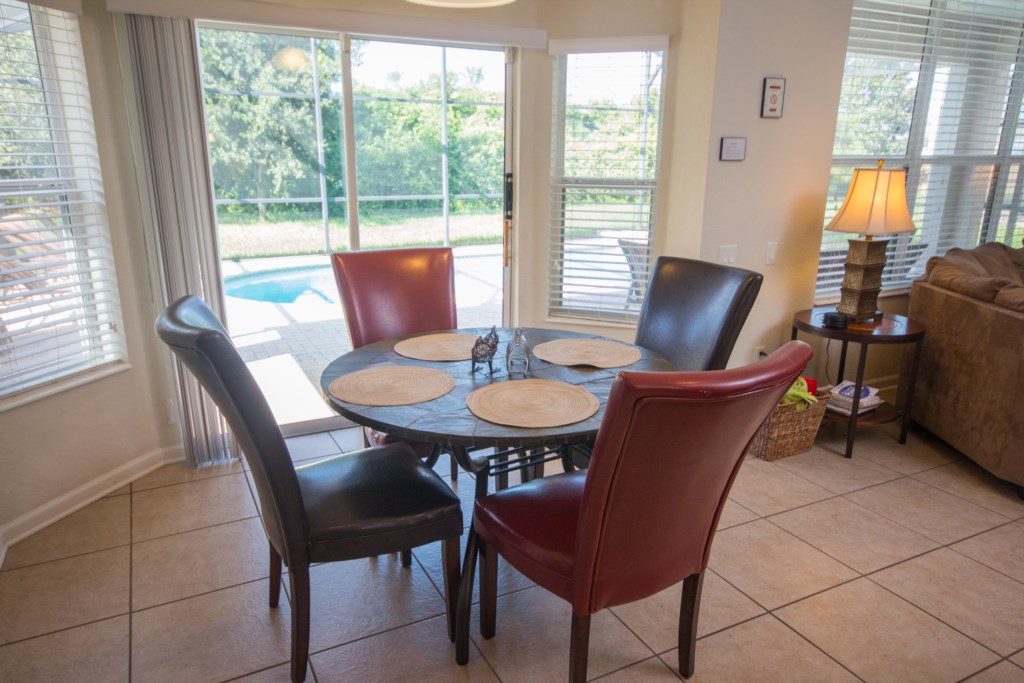 The dining area provides a wonderful space in which to eat with comfortable leather chairs and a beautiful marble table that seats 4 guests.