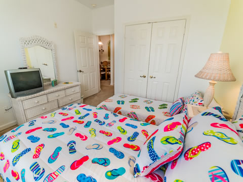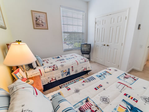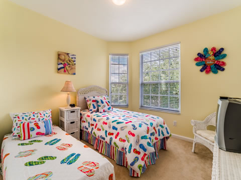 Welcome to Windsor Palms Resort. This 3 bedroom, 2 bathroom condo is located within steps of the pool and clubhouse with great views of the tennis court from the private balcony. It is dog friendly (up to 30 lbs). The open floor plan has 3 bedrooms and sleeps up to 5 guests. The master bedroom consists of 1 queen bed, the second bedroom has 2 twin beds and the third bedroom has 1 twin bed, and a roll-away to accommodate a 6th guest. Prepare meals at your leisure in the fully furnished kitchen. Free WIFI and a washer and dryer are included.