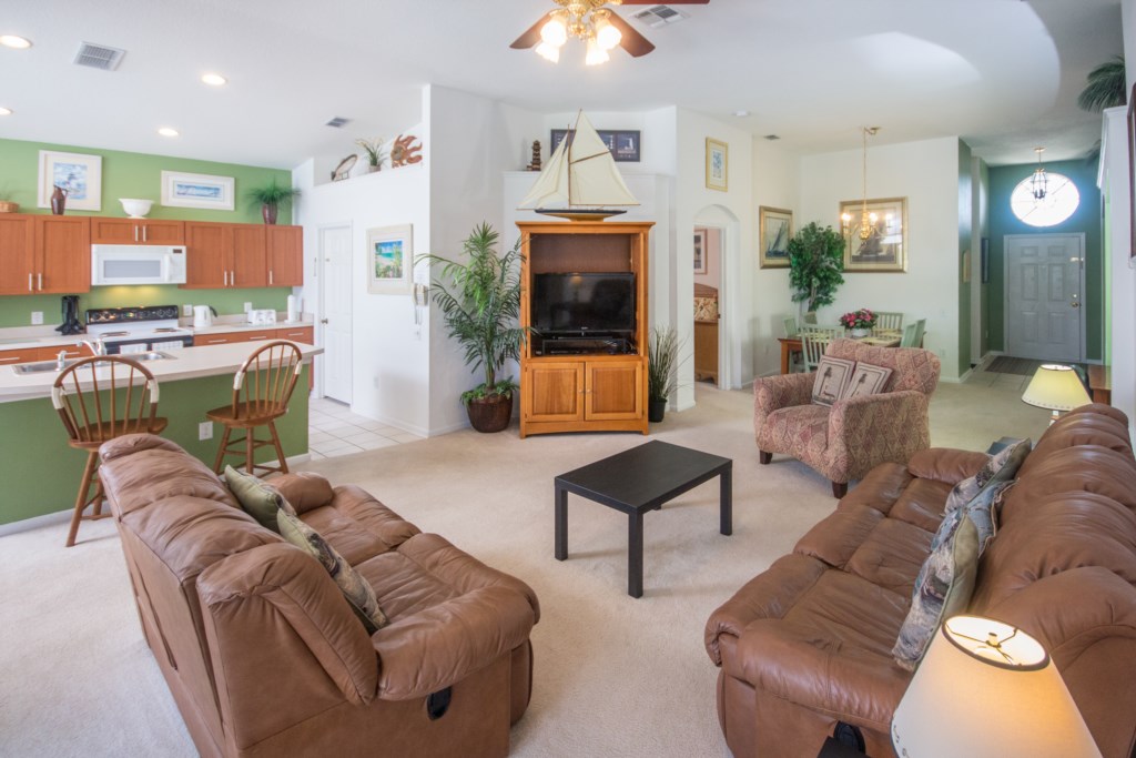 The home has a total of 3 TV's, so everyone can spread out and relax after a long day at the theme parks. And with plenty of space in the living room, you can all come together for a movie night on the flat screen TV. Aren't ready to be stuck inside? Enjoy your private pool and spa, right in your back yard. Screened in to keep all the florida bugs out, but still enjoy the Florida Sunshine. Make sure you ask about the pool and spa heat, which is available for an additional charge.