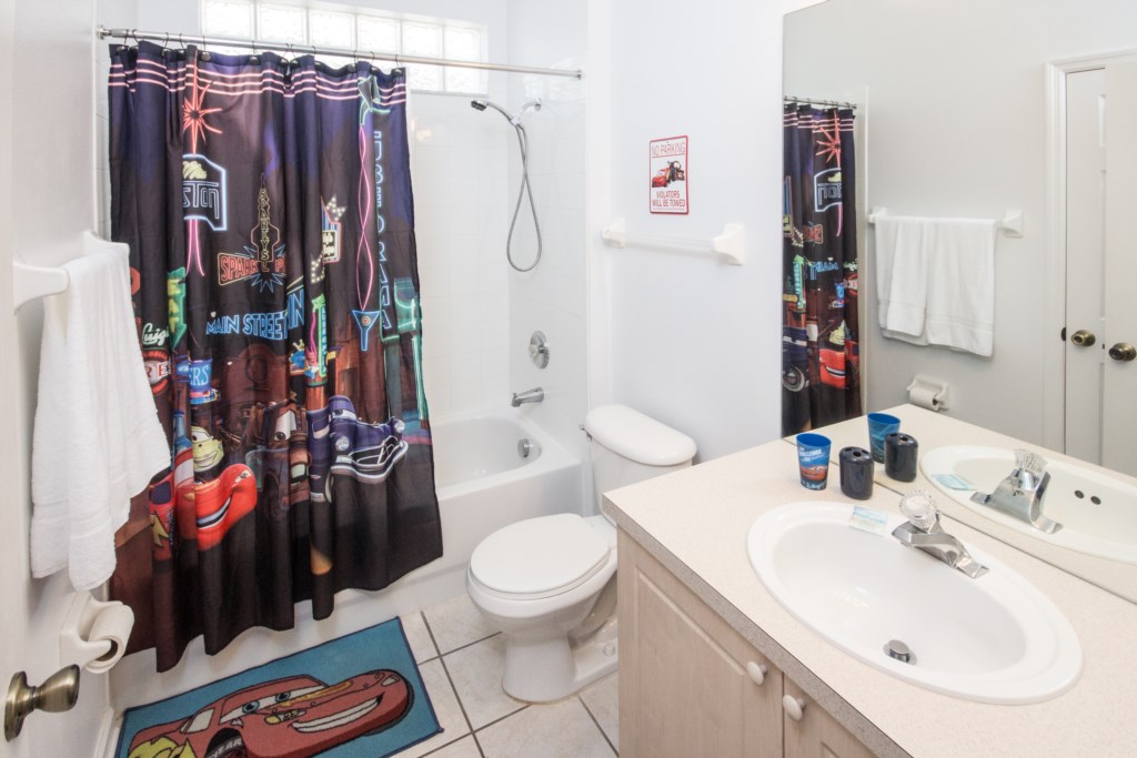These vacation rental homes and condos surround a 7500 square foot clubhouse consisting of a large swimming pool with sun deck and hot tub, separate toddler pool and spa. Inside the clubhouse there is an internet café, state-of-the-art fitness center with treadmills, stepper, weight machine and stationary bike, convenience store, arcade games, pool and ping pong tables, a 58-seat cinema where you can play your own family-oriented DVD's, and a sundry shop that is open from 8:00am to 10:30pm. On the outside there are tennis courts, beach volleyball courts and a half-court basketball court, as well as a children’s playground, picnic and barbecue area. There is also a shuttle service to Walt Disney World, SeaWorld and Universal Studios (local charges apply.) The Windsor Palms community is gated and supervised 24 hours a day.