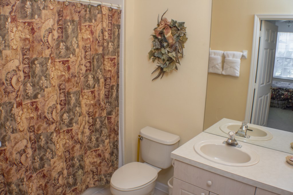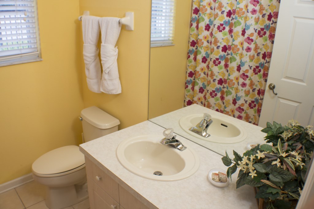 This tastefully decorated 2-storey villa has 6 bedrooms, 4 bathrooms and is located on cue de sac. It is spacious enough for large families or for two families that are vacationing together. This beautiful villa has 2 living rooms, formal dining area that seats 6, gourmet equipped kitchen with granite counter tops, 4 bar stools and a breakfast nook that seats 4. There are 8 TV's and a DVD player (42" flat screen TV in the family room with DVD player, 42 inch in the games room with PS3 connected, 19" flat screen TV's in the remaining bedrooms) There are 6 bedrooms and 2 full bathrooms and the villa is on the Phone Program. The bedrooms consist of a queen bedroom downstairs while upstairs there are 5 further bedrooms consisting of a master bedroom with king size bed and tray ceiling that has an en-suite bathroom that includes his n' her vanities, bath, separate shower cubicle, toilet room, and walk-in-closet. There are also 3 further twin bedrooms and a queen bedroom which has an en-suite bathroom with single vanity, shower cubicle and toilet and 2 twin bedrooms upstairs. While both upstairs and downstairs have a communal bathroom with a single vanity, bath with overhead shower,and toilet room.