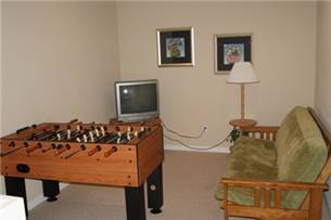 If you need more entertainment, there’s a small games room that has another sofa and a full-size foosball table. Additionally, there’s also another TV in the games room, which is perfect if you want to catch a game on TV.