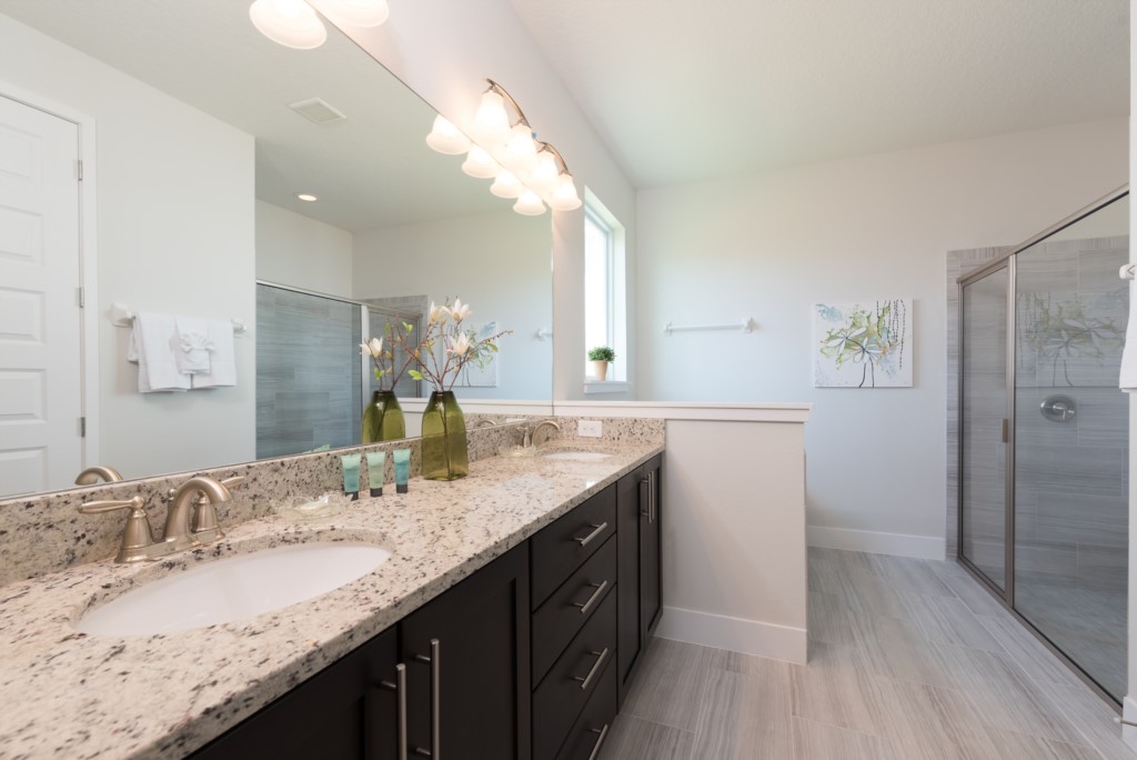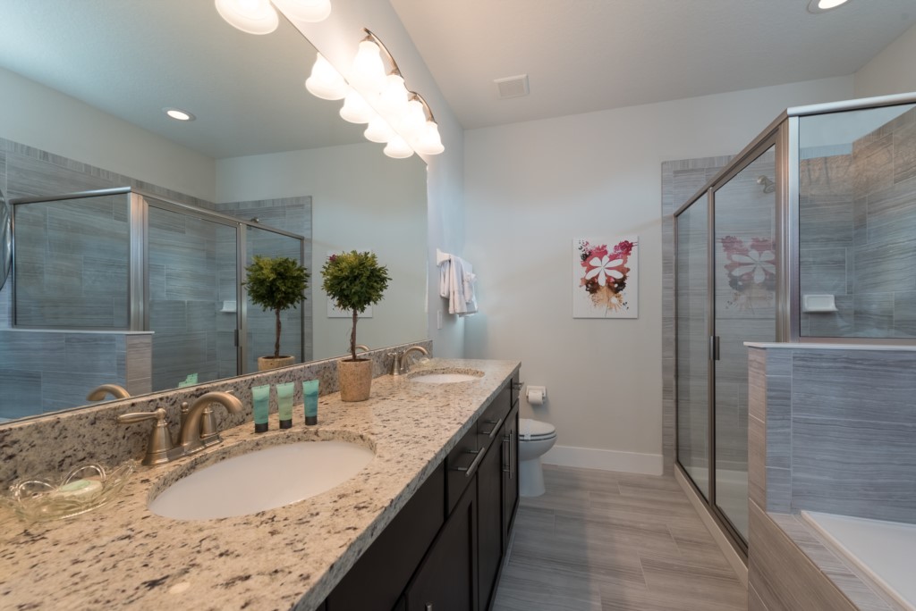 King sized bedroom - En suite bathroom (Bath, shower, twin vanities)