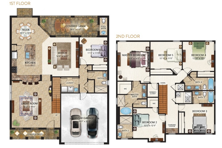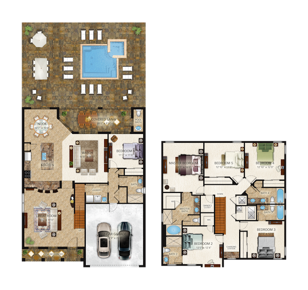 With 2911 sq ft of air conditioned comfort, the 6 bedroom Kingston model offers two floors of beautiful and spacious open plan living space with a fabulous king sized master bedroom suite, three king sized bedrooms with a private en suite, and two king sized bedrooms with access to a nearby family bathroom.