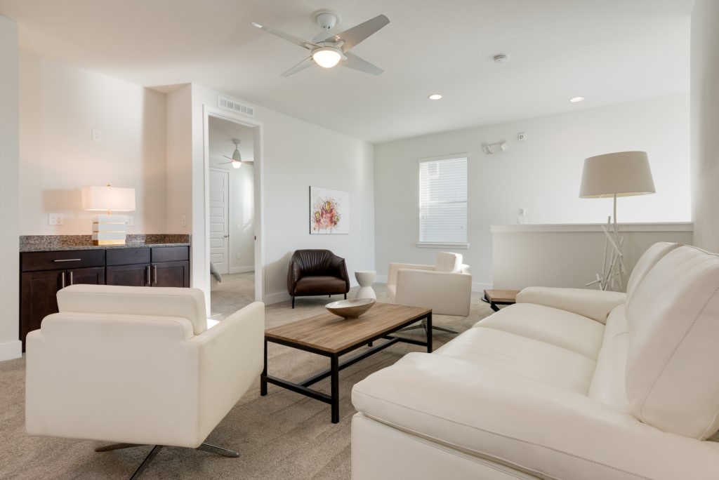 A second family living area with sofa and accent chairs is located on the home's upper floor!