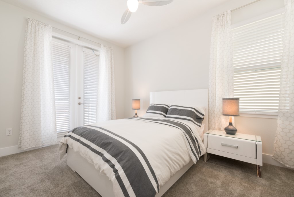 A king sized bedroom with pool deck access - - En suite (shower, bath, twin vanities)