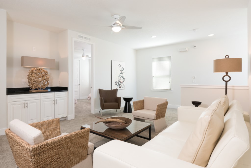 A second family living area with sofa and accent chairs is located on the home's upper floor!