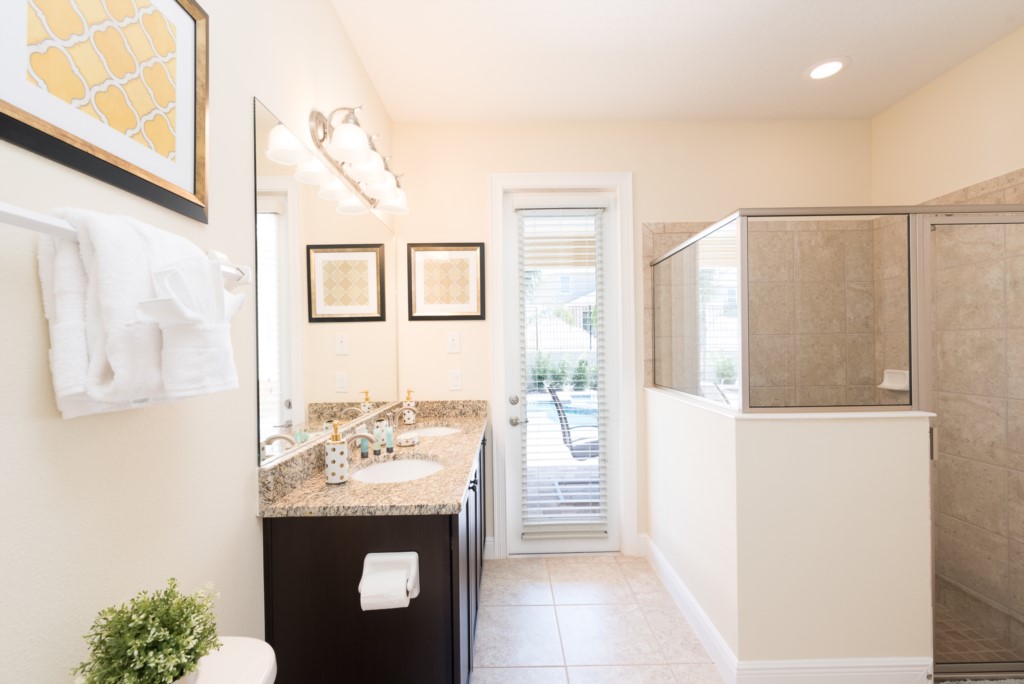 A king sized suite with pool side access - En suite (Bath, shower, twin vanities acts as pool bath)