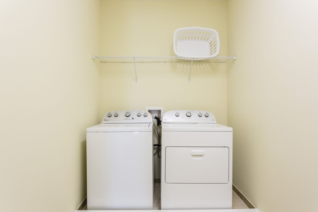 Two sets of washing machines and dryers (a set on each of the upper and lower floors)