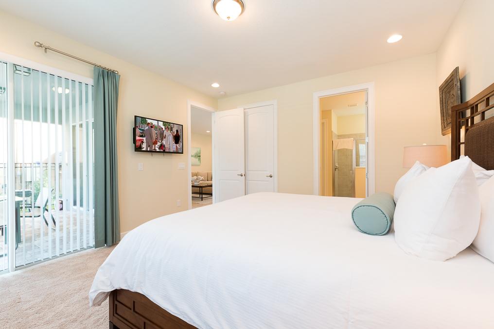 King sized Bedroom - Patio Access - Bathroom (Twin Vanities & Shower)