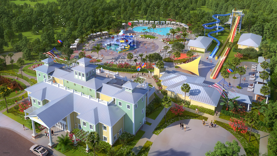 The Encore Club at Reunion will include a clubhouse, restaurants, water park, splash play area and drop slides for guests to enjoy from March 2016.