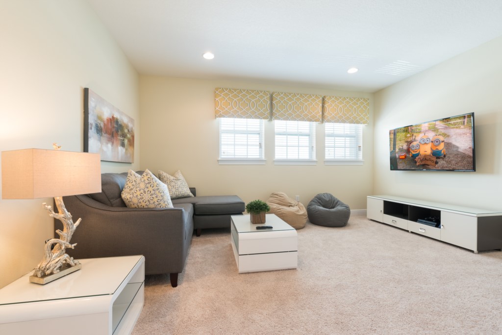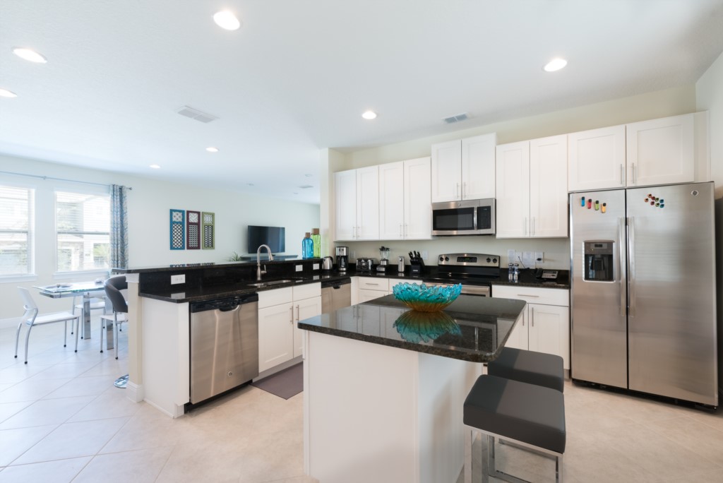 Sleeping up to 12 guests, each bedroom is furnished with a contemporary style and includes 4 king sized master bedrooms. An upper floor loft area is the perfect place to unwind and enjoy some entertainment with a PS4 game console and a large TV for the whole family to enjoy. A safe is also located inside of the home for personal valuables.