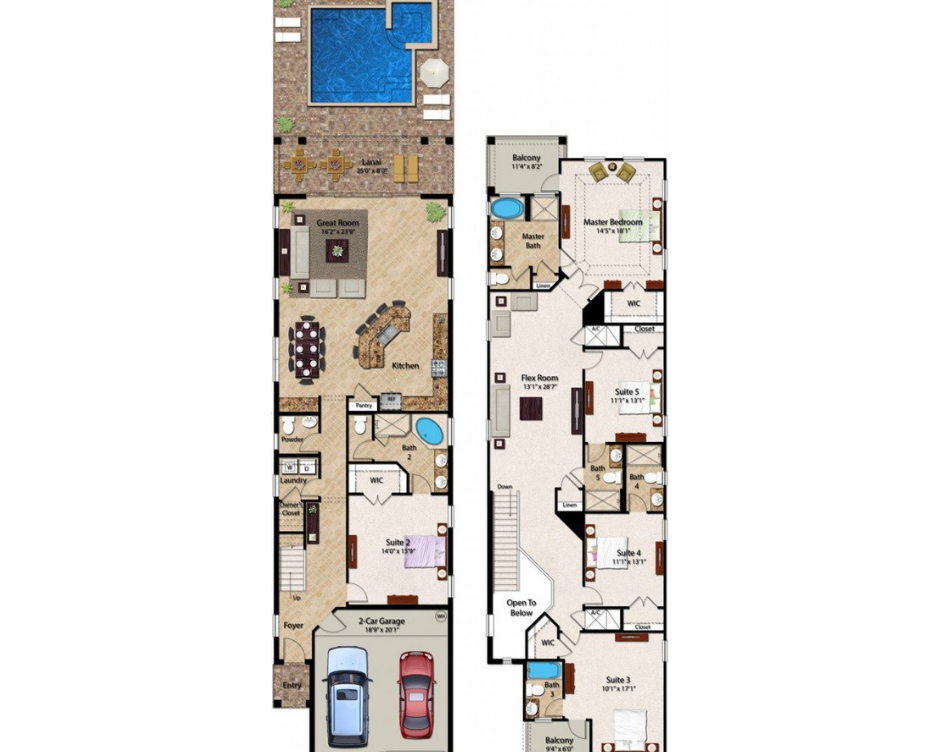 The private swimming pool and relaxing patio is one of Encore's largest decks and the perfect way to enjoy Florida's sunshine! The outdoor ping pong table as well as the upstairs loft area offers hours of entertainment with board games, a card table, and a pool table!