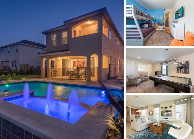 This elegant 5 bedroom vila is located at the Encore Club, less than a 10 minute journey to Walt Disney World and their 4 amazing theme parks! The Encore Club also offers exclusive on property amenities such as their clubhouse with a delicious restaurant, bar, and fitness center as well as a water park with a splash pool and twisting/ drop slides!