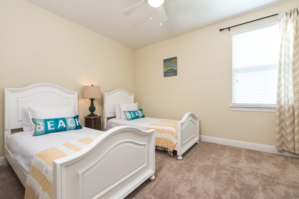 Room with 2x twin beds - Jack Jill style shared bathroom (shower/tub combo)