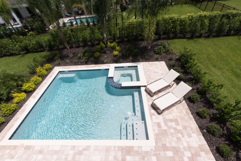 Luxurious private pool deck with spa. Includes two lounges and patio table seated for four