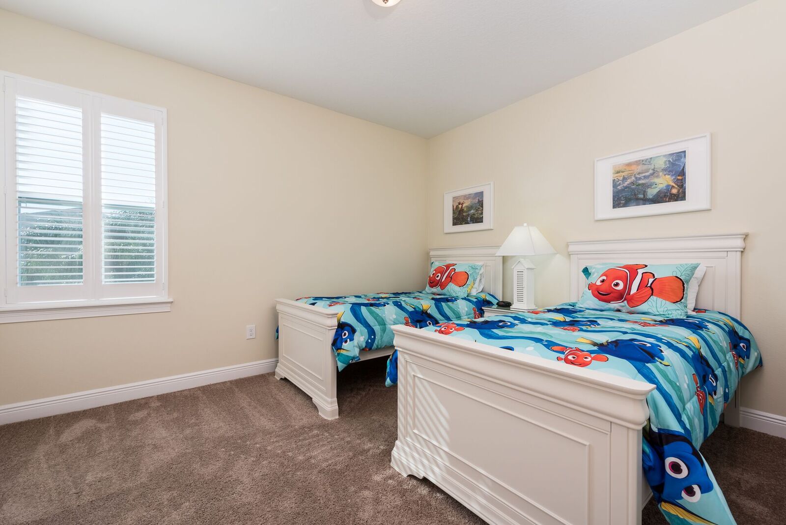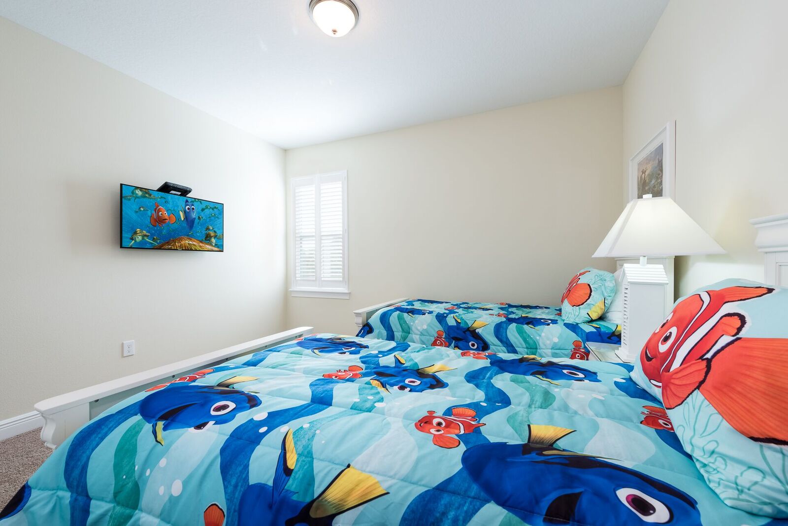 'Finding Nemo' themed bedroom with a Full and a Twin sized bed