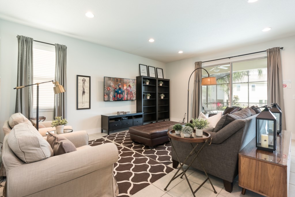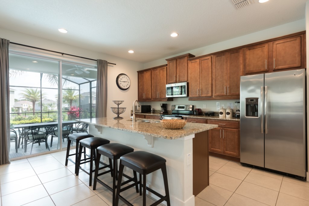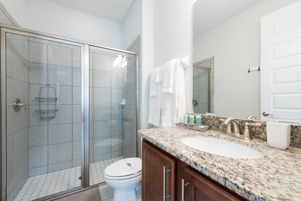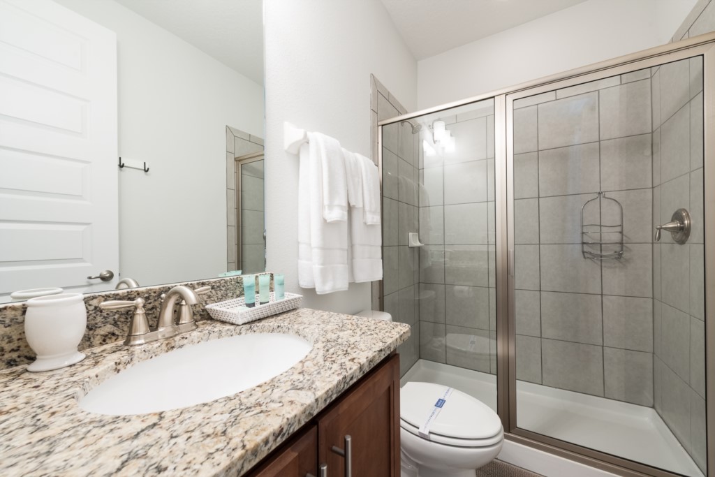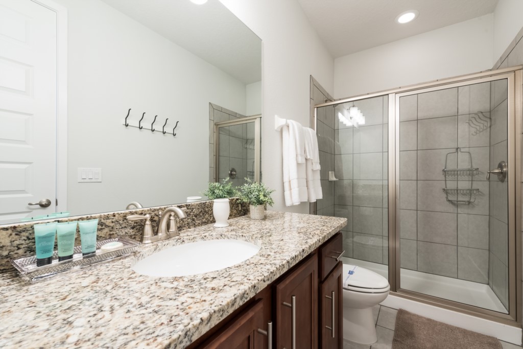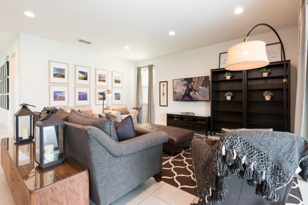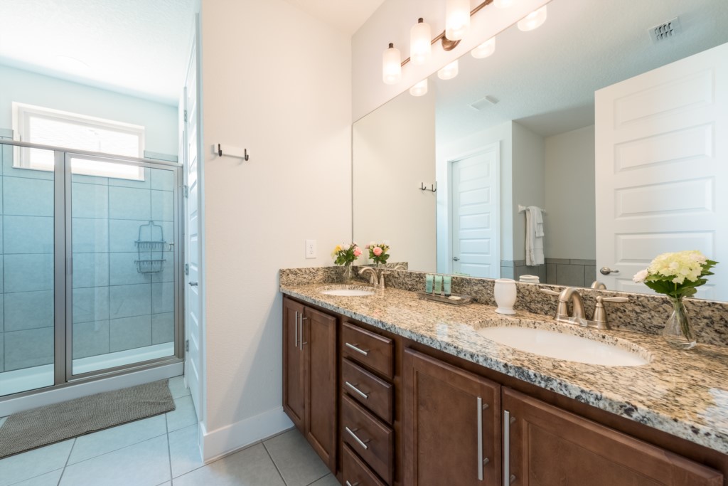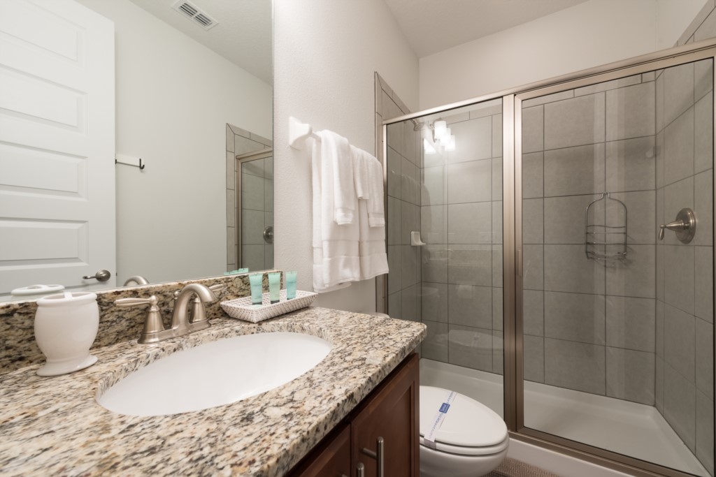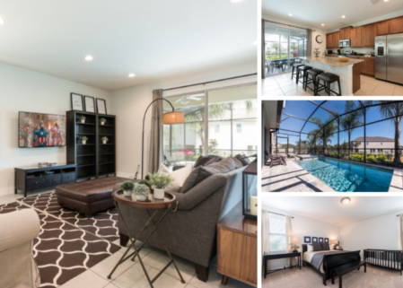 This contemporary 5 bedroom villa located at the Encore Club is less than a ten minute drive to Walt Disney World and their four incredible theme parks. There is also exclusive on property amenities that the Encore Club offers such as a waterpark with drop and twisting slides as well as a clubhouse with delicious restaurants!