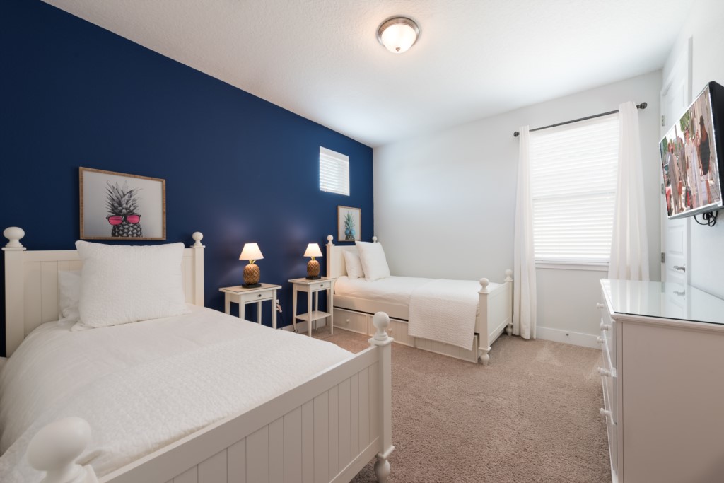 Bedrooms are located across both floors, sleeping up to 10 guests comfortably and with privacy.A fully equipped kitchen with a breakfast bar allows the entire family to enjoy home cooked meals in the pleasure of your own vacation home.
