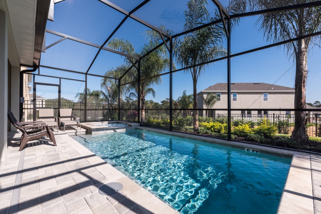 A private pool deck and spa is the only way to unwind on vacation and enjoy the Florida sunshine right outside your patio doors!