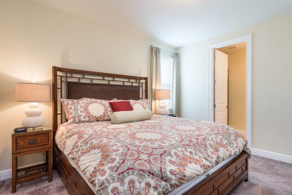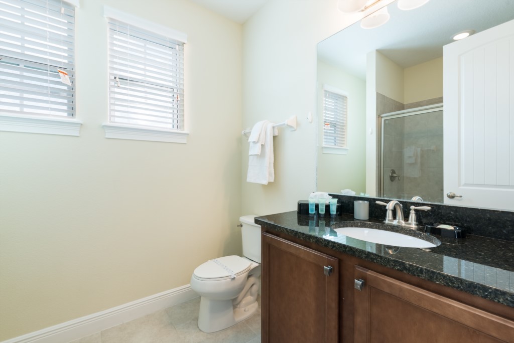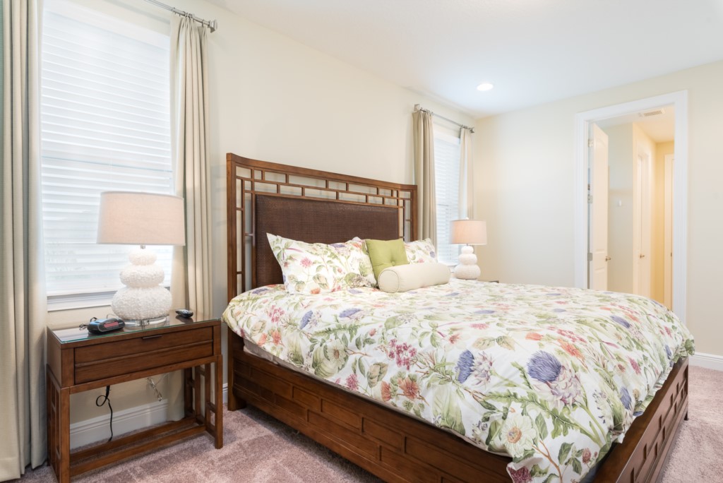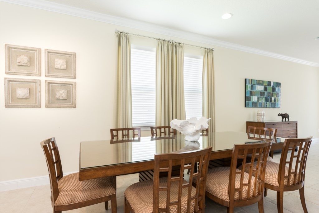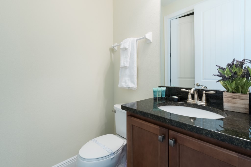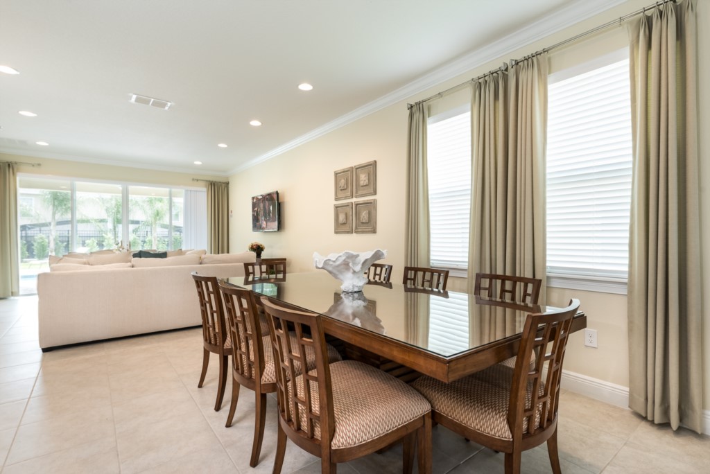 A fully equipped kitchen, living and dining spaces, and rooms on both floors make this a comfortable and enjoyable center piece of your dream stay near Disney.