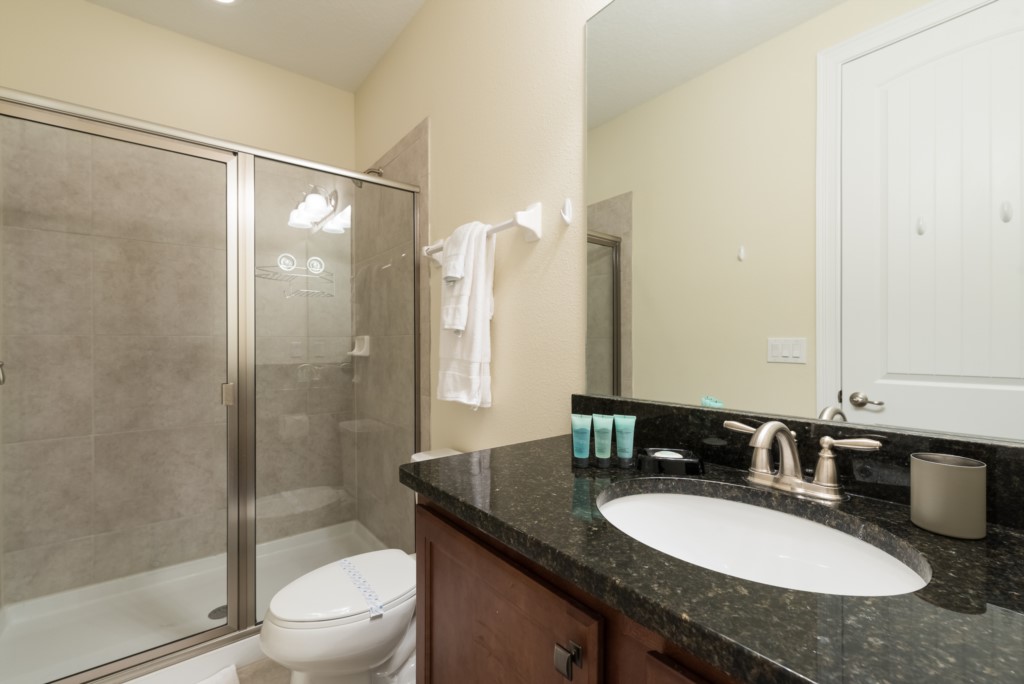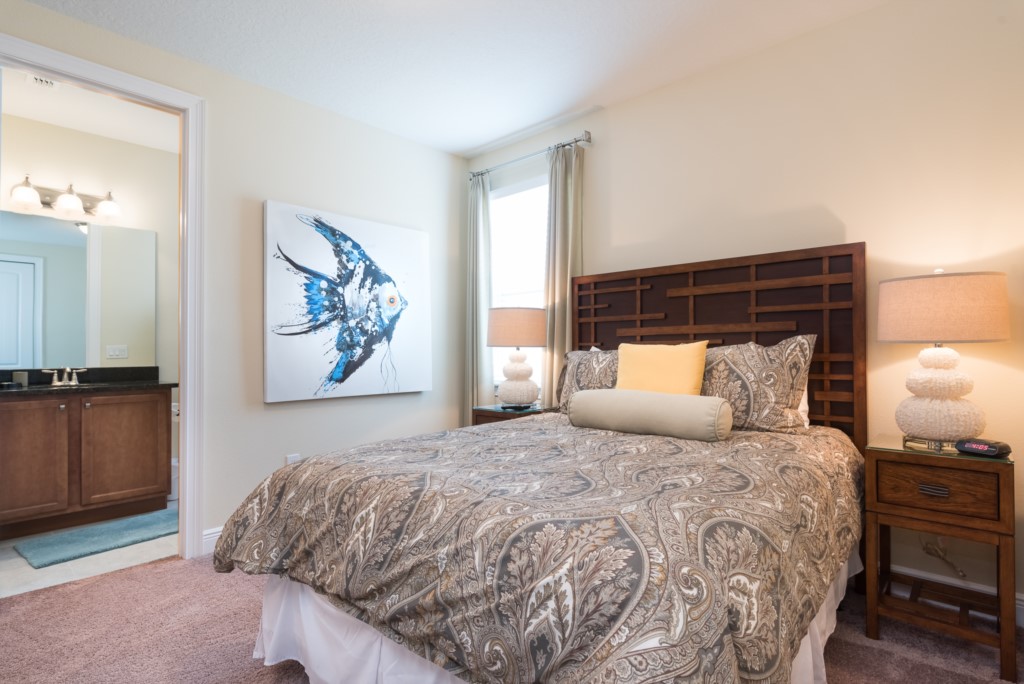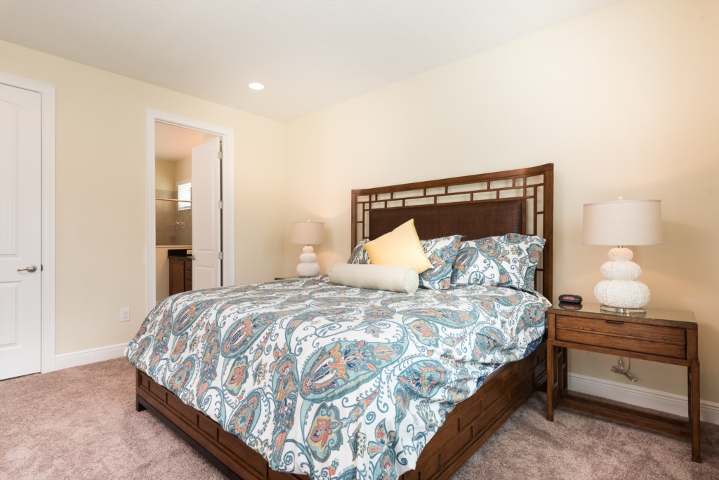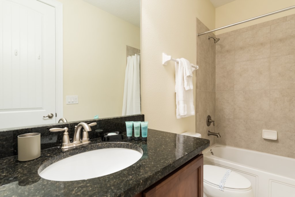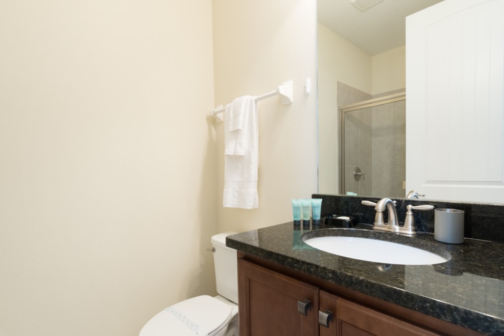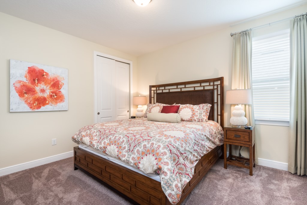 A fully equipped kitchen, living and dining spaces, and rooms on both floors make this a comfortable and enjoyable center piece of your dream stay near Disney.