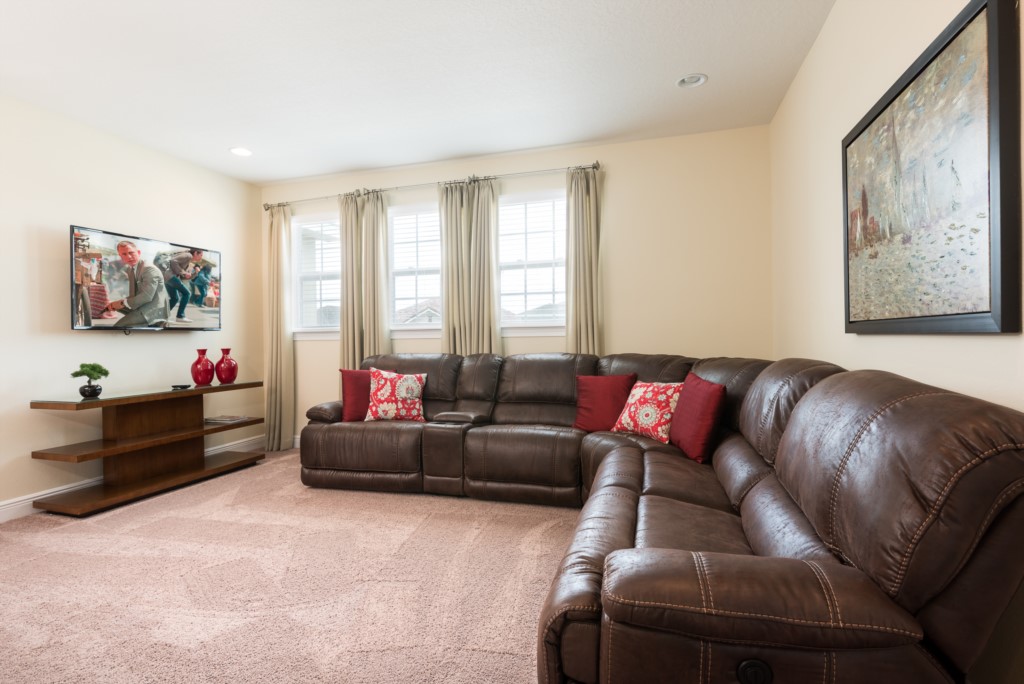 Loft area with smart TV and L sectional sofa