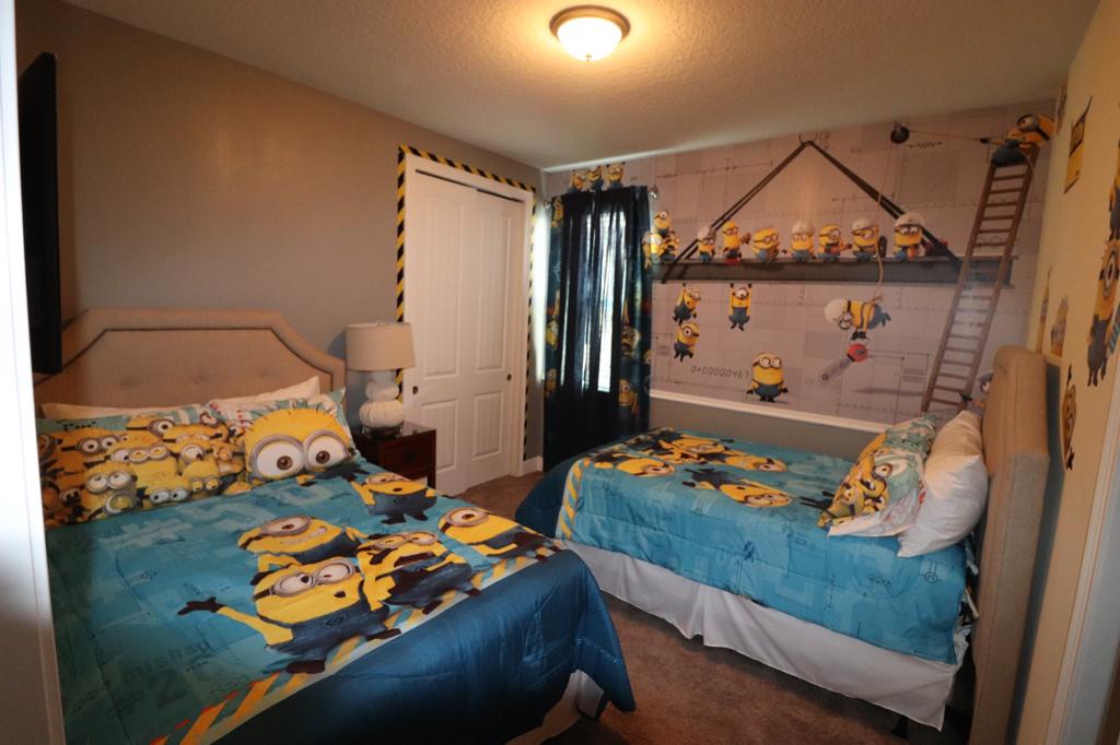 Themed bedroom with a Twin and Full sized bed , en suite (shower)