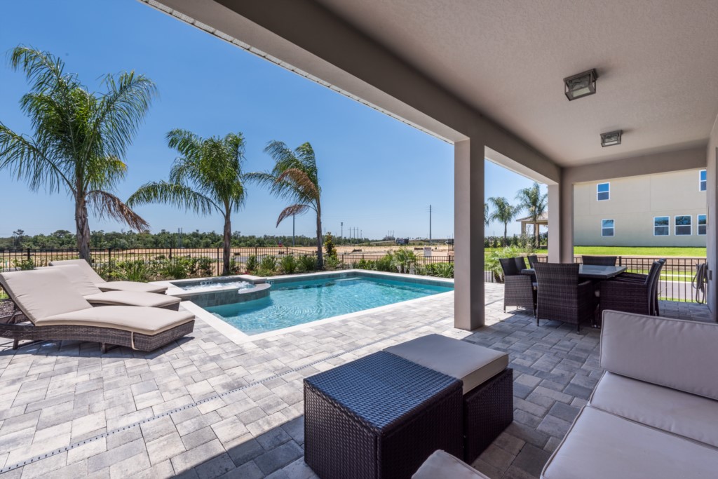 The private patio is the perfect place to enjoy Florida's sunshine with your very own swimming pool and spillover spa!