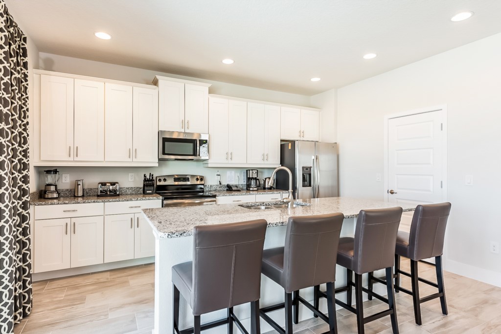 Bedrooms of this 6 bedroom home are on both floors including 2 King sized bedrooms as well as a fully equipped kitchen with a breakfast bar where you and your family can enjoy home cooked meals together while on vacation!