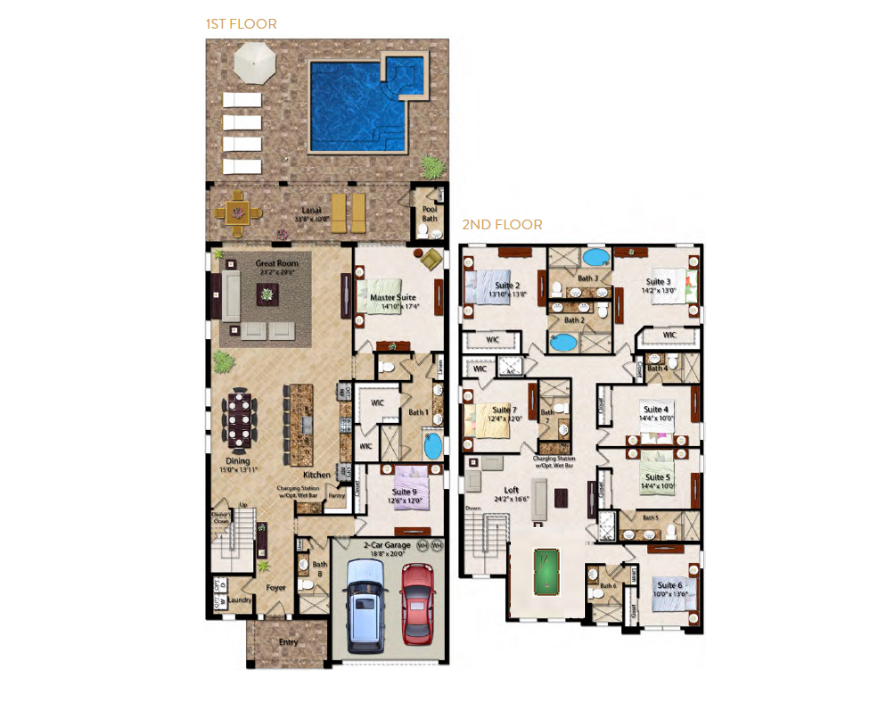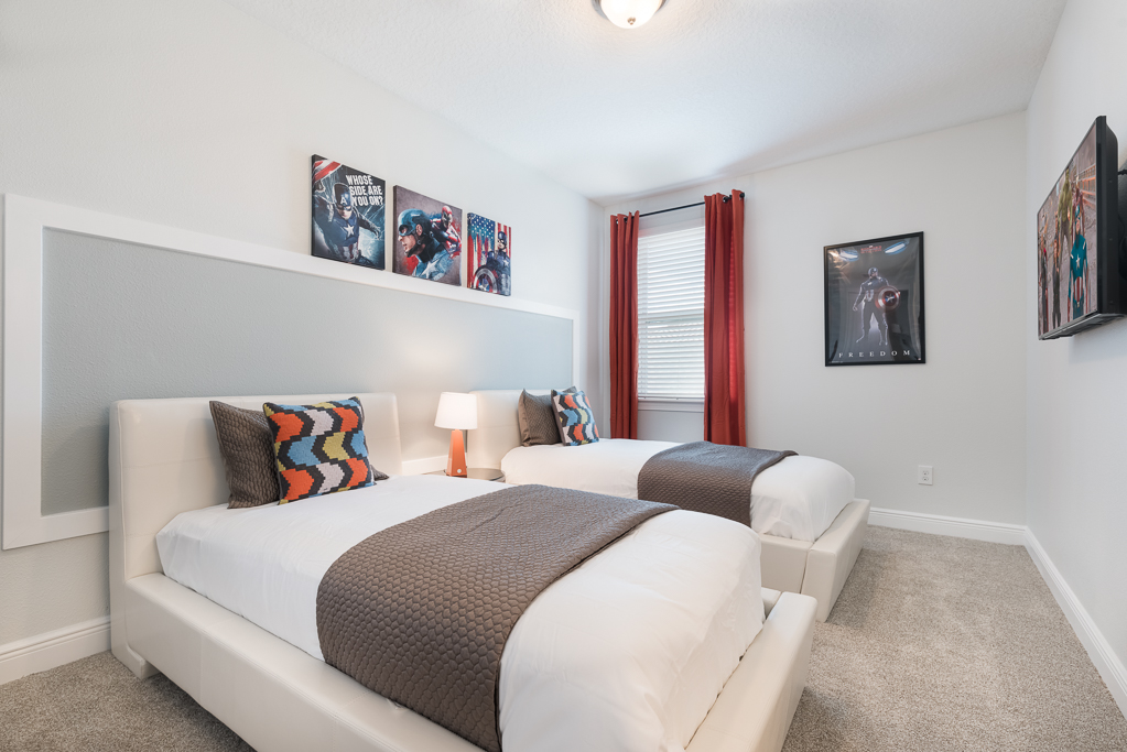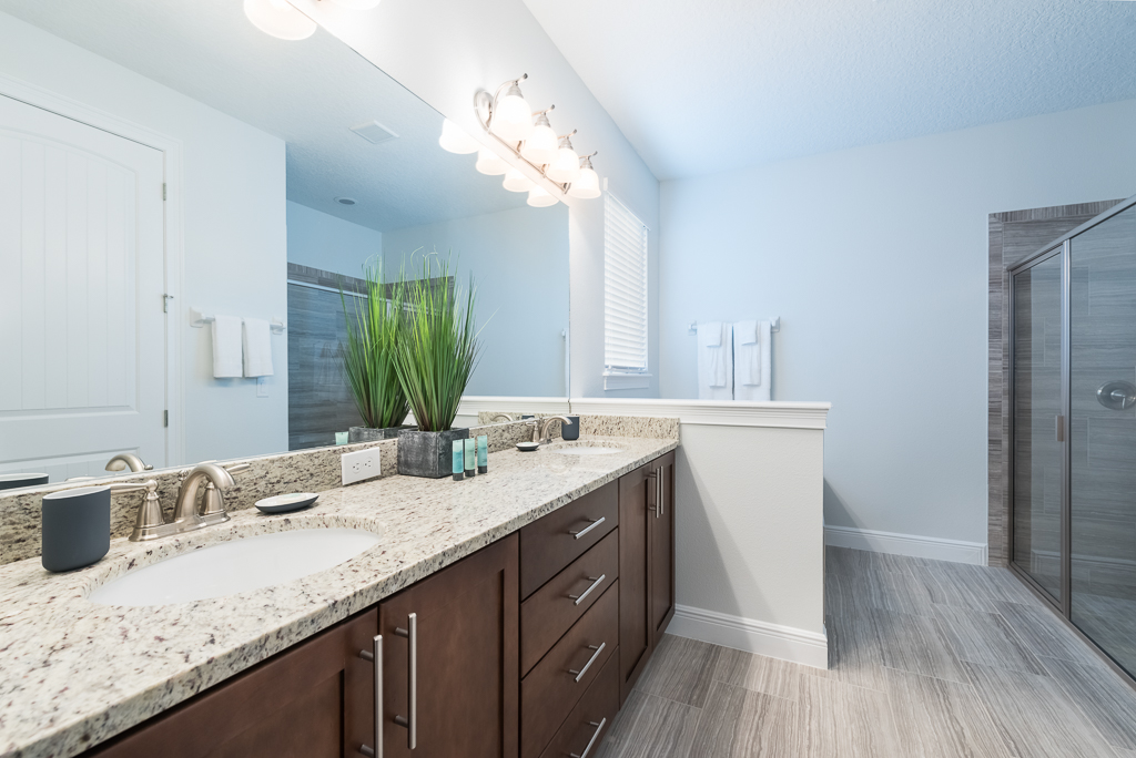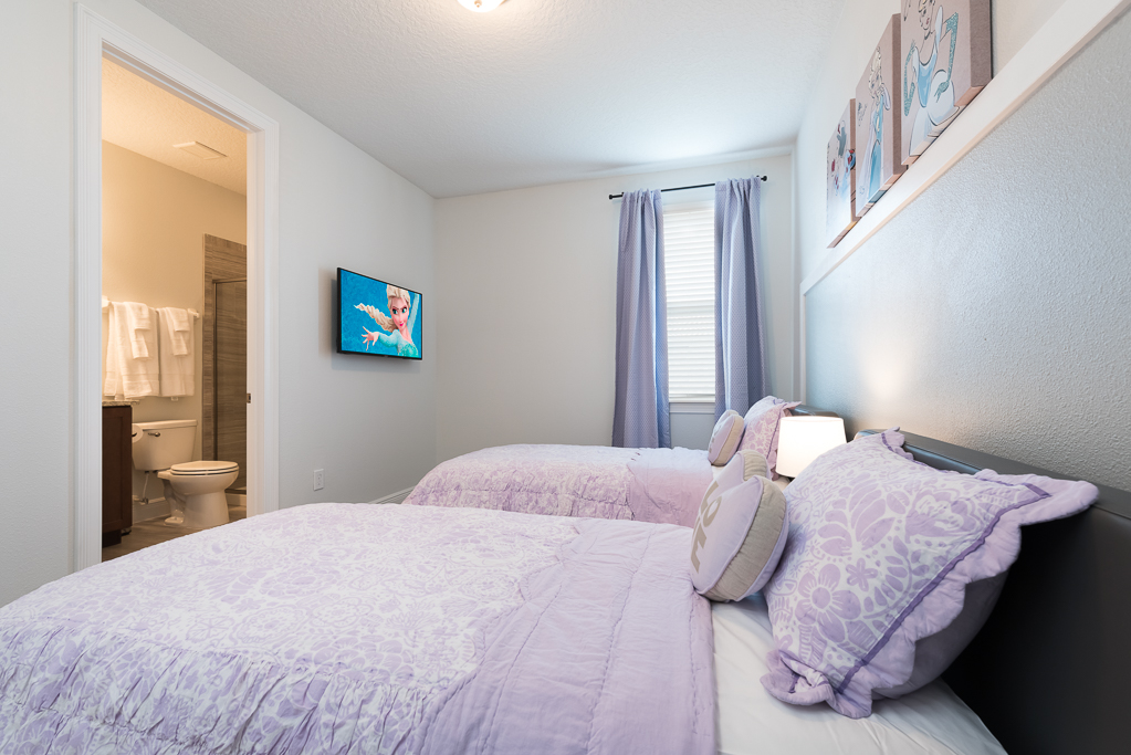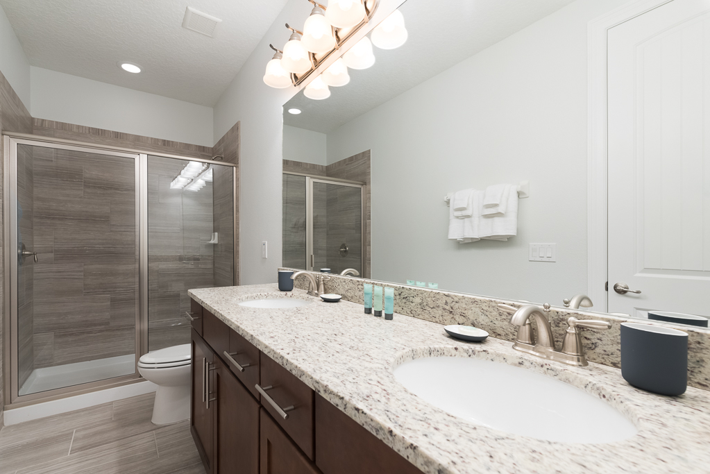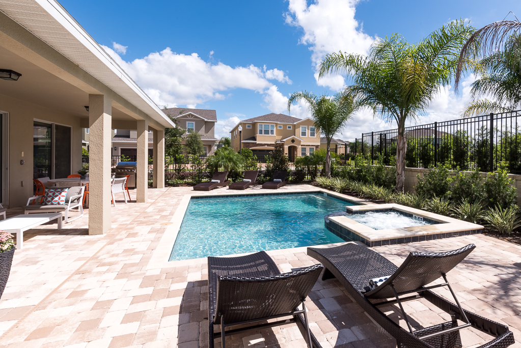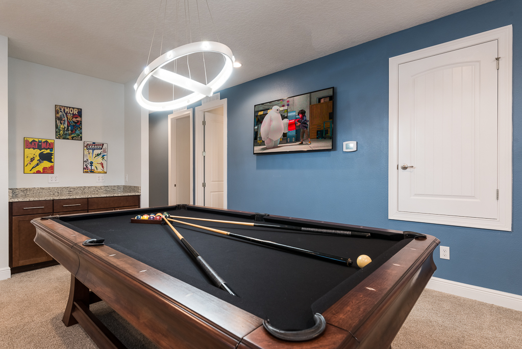 Having a private pool deck with a spillover spa is the most relaxing way to unwind after a long day at the theme parks or you could have a friendly competition of pool in the upstairs entertainment area that was converted from a bedroom.