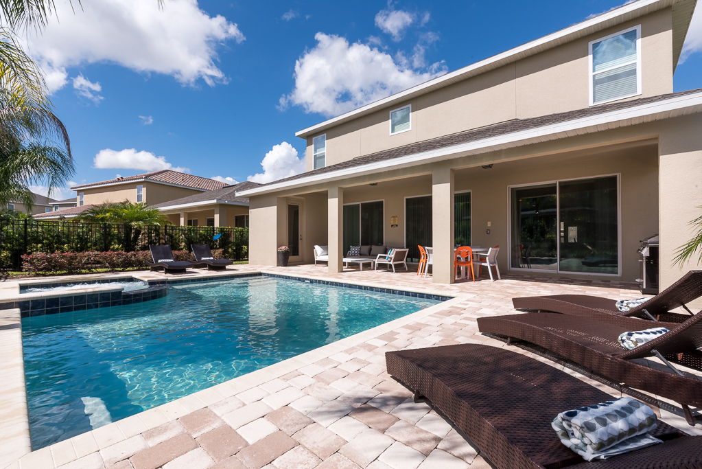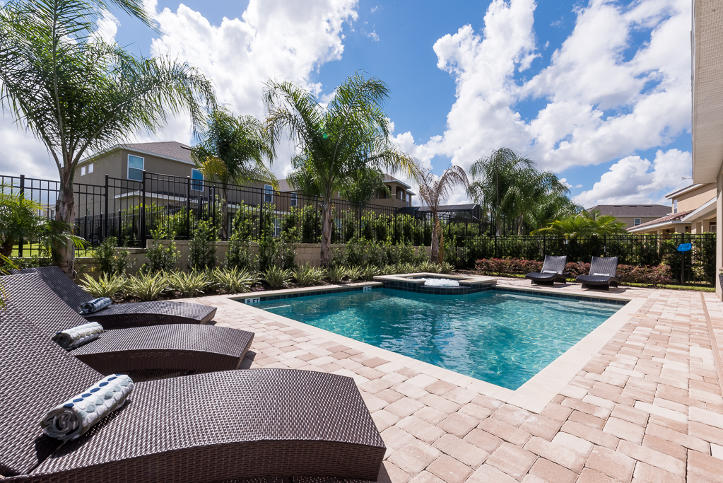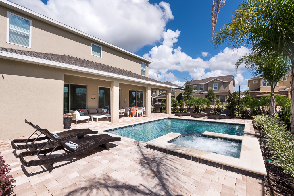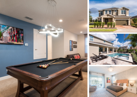 This modern 8 bedroom pool villa is located at the Encore Club, situated less than ten minutes to Walt Disney World! Sleeping up to 16 people, there is plenty of space and privacy for your entire family. With 4,669 sq ft of luxury, this Hawthorne model home is the perfect option!
