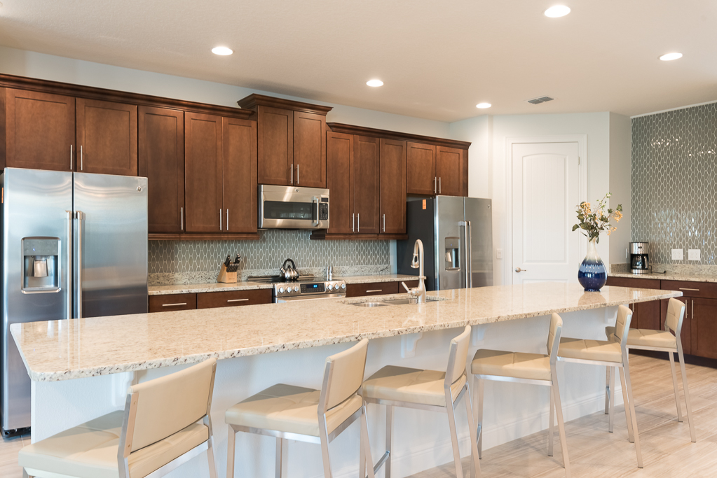 Fully equipped with a granite six seat island style breakfast bar