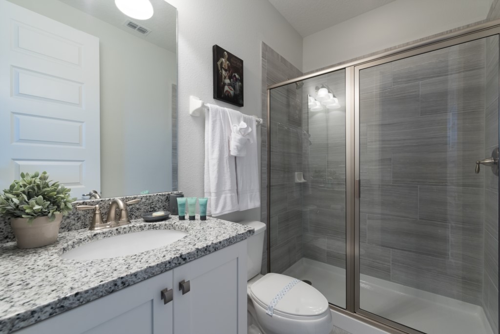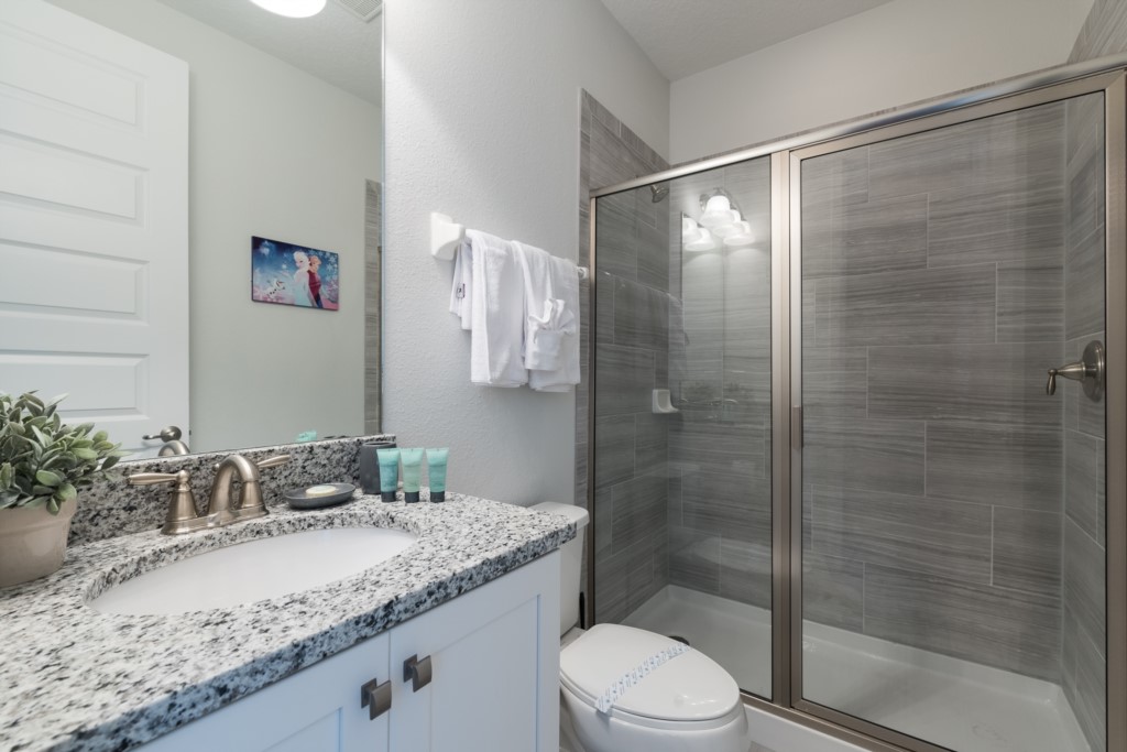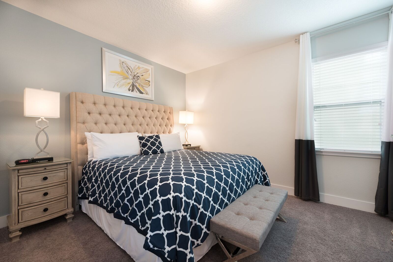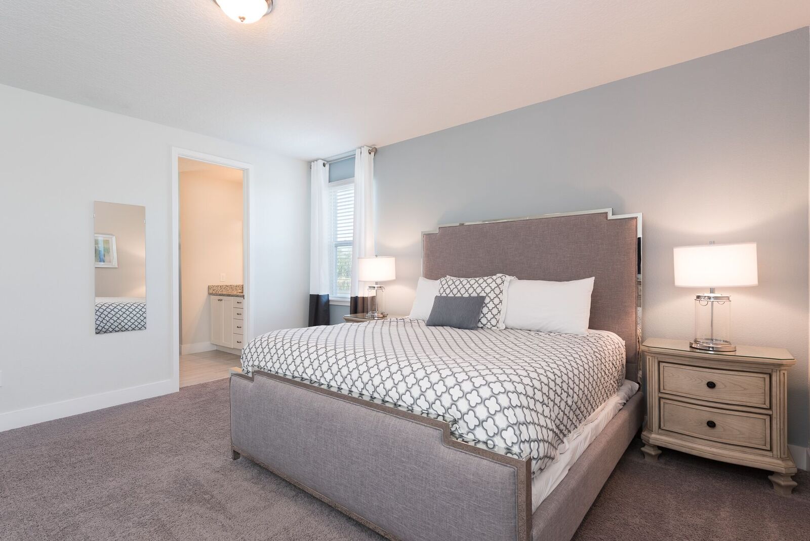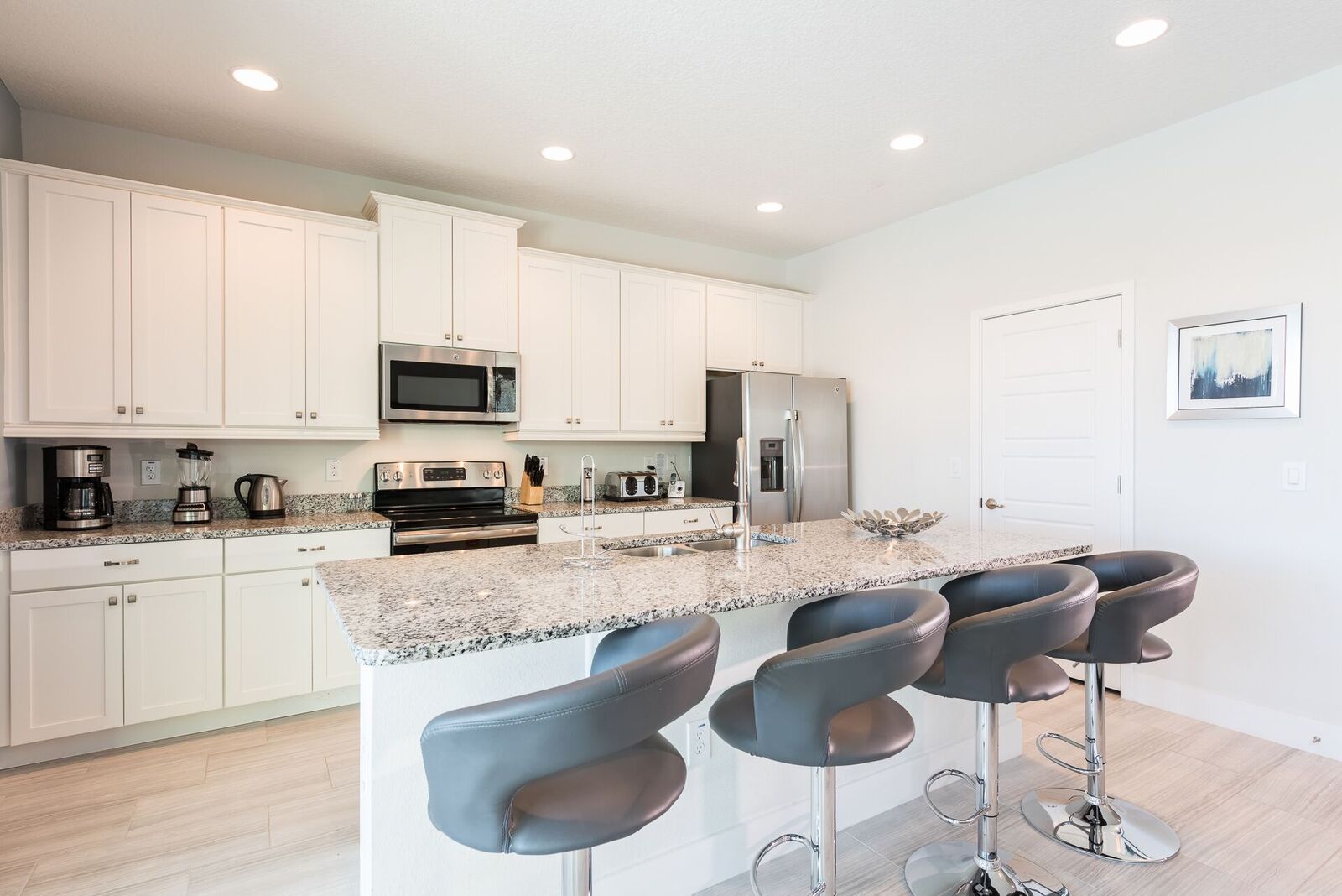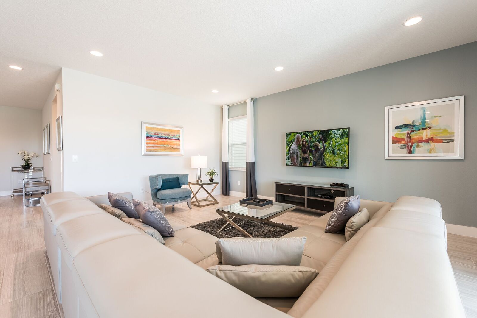 This modern 5 bedroom villa is located at the Encore Club in Orlando, less than a ten minute drive to the happiest place on Earth and their four incredible theme parks! The Encore Club offers amazing amenities right on property including a thrilling waterpark with twisting and drop slides as well as a fabulous clubhouse with a restaurant and bar!