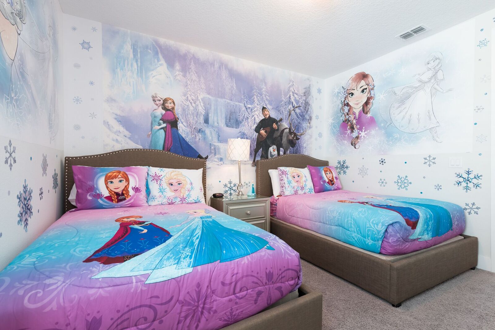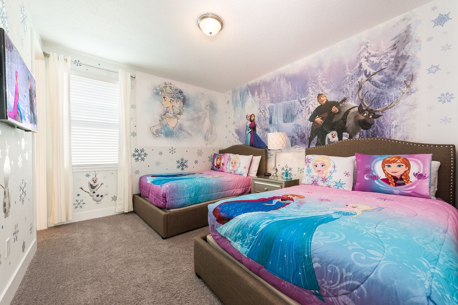 Frozen themed bedroom with 2x Full sized beds and an en suite (shower)