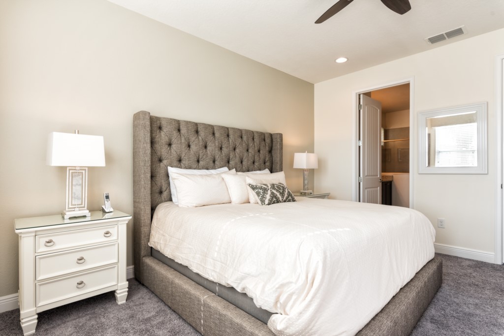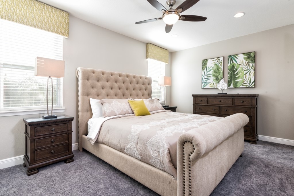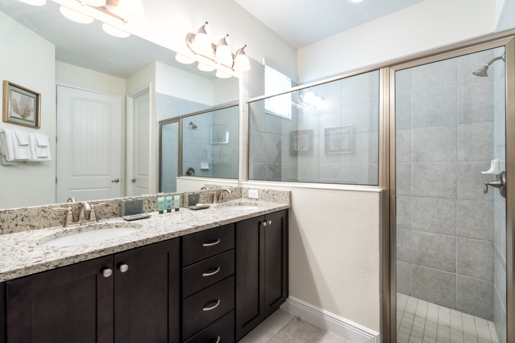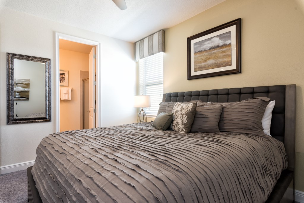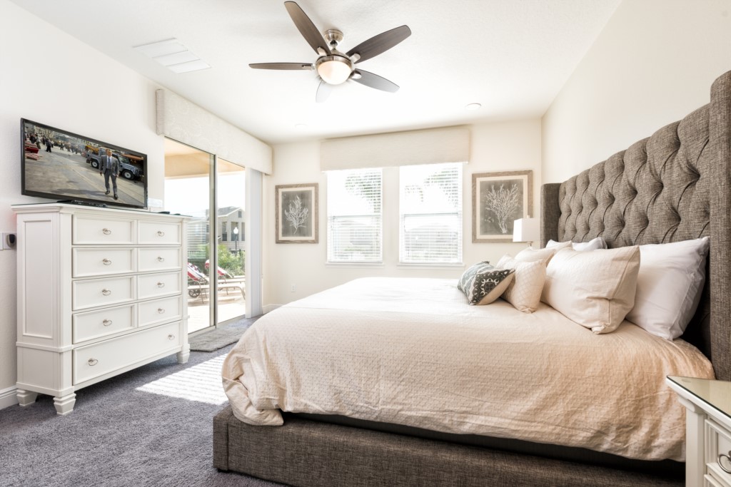 King sized Master located downstairs with en suite (shower, twin vanities) and pool access
