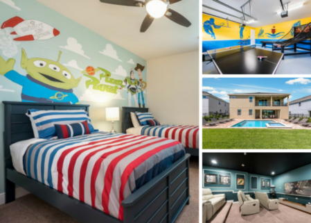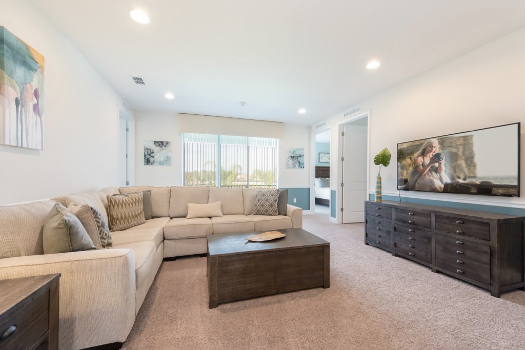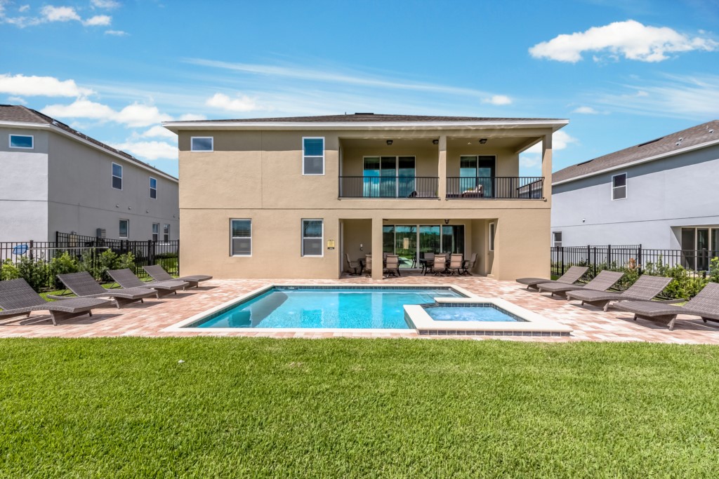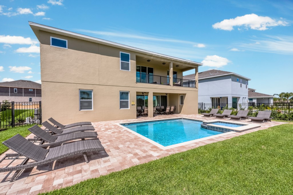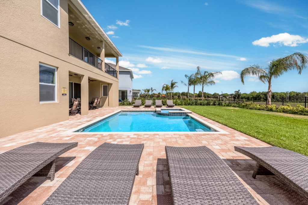 The private patio with a swimming pool and spillover spa is the perfect way to enjoy Florida's sunshine and the home theater is the only way to relax after long days at the theme parks where you and your loved ones can watch your favorite movies together!