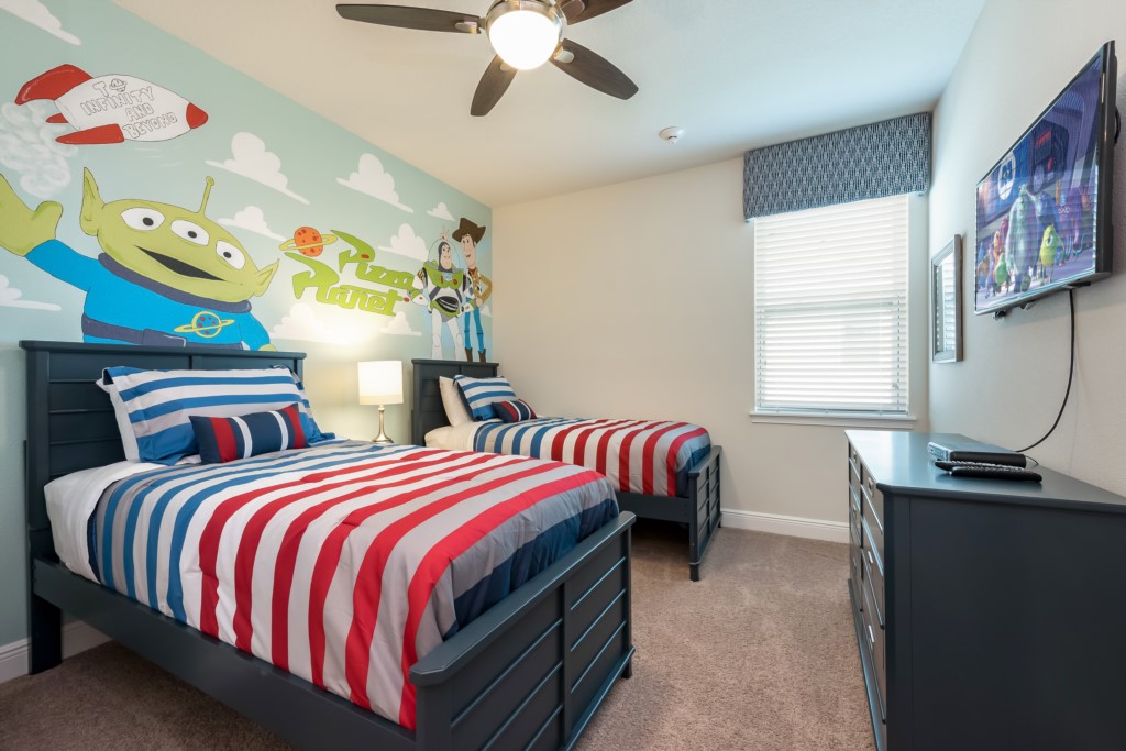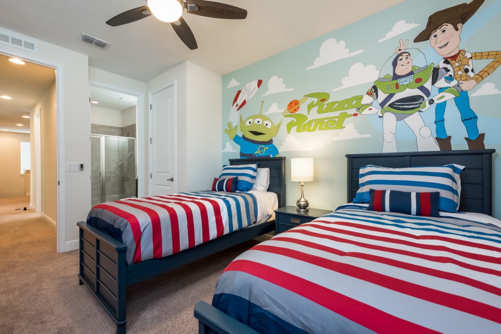 Themed bedroom with 2x Twin sized beds and an en suite (shower)